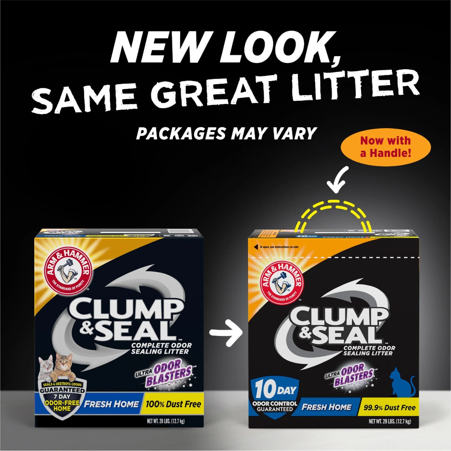 - Add more Arm & Hammer Clump & Seal Complete Odor Sealing litter to replace what you have scooped out and maintain a depth of 3-4 inches. Once a month empty the entire litter box.
