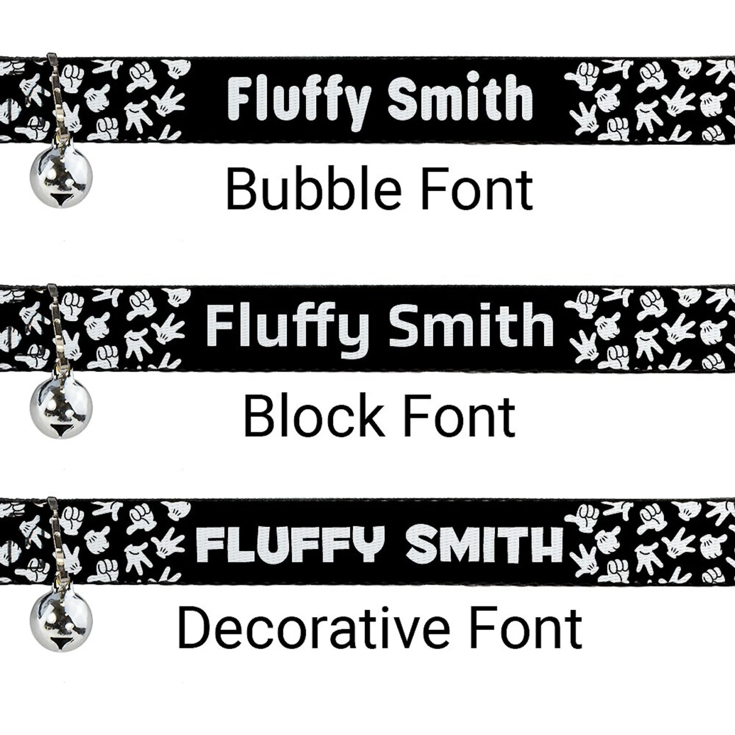 - Mickey hand design and attached bell add a charming touch to your kitty’s look.