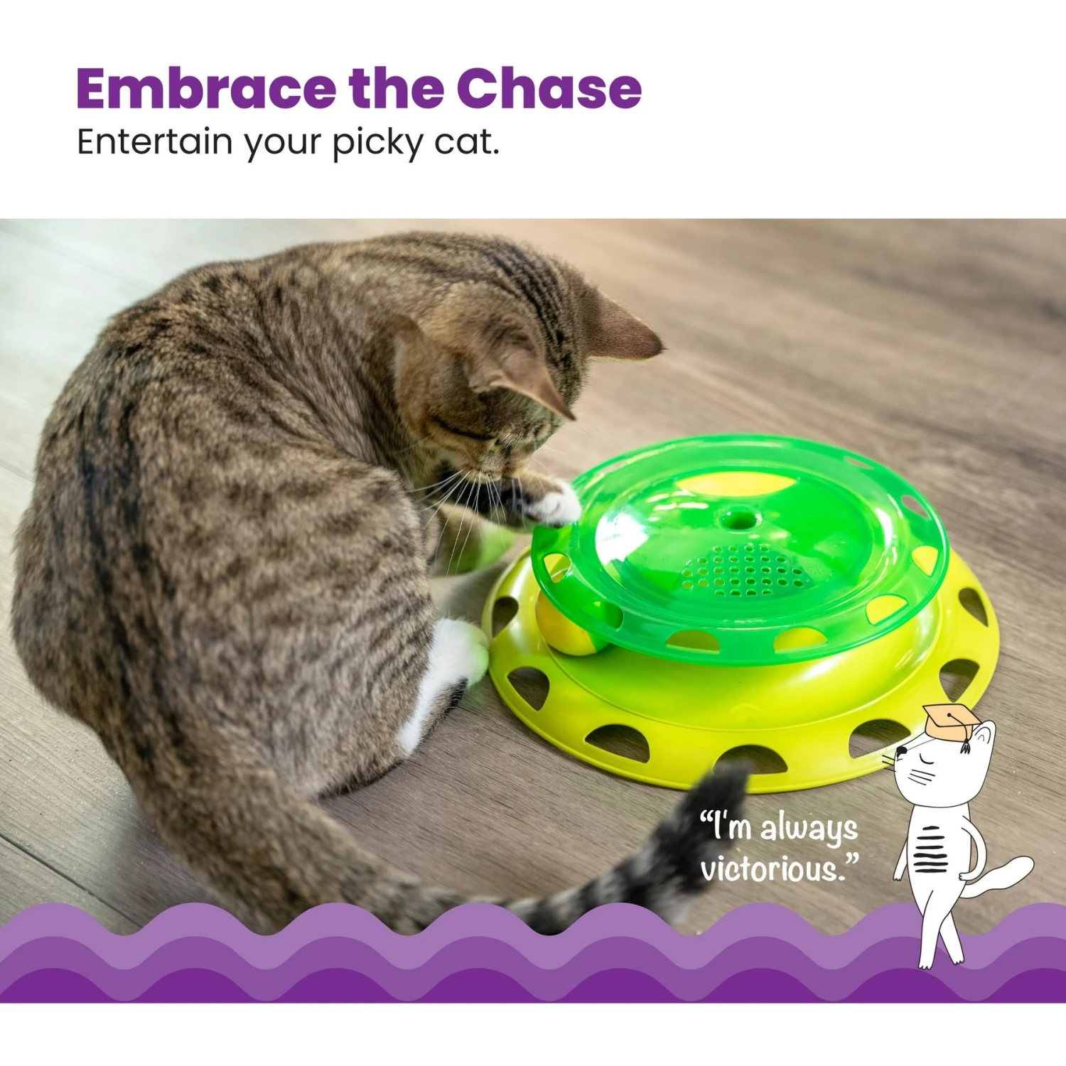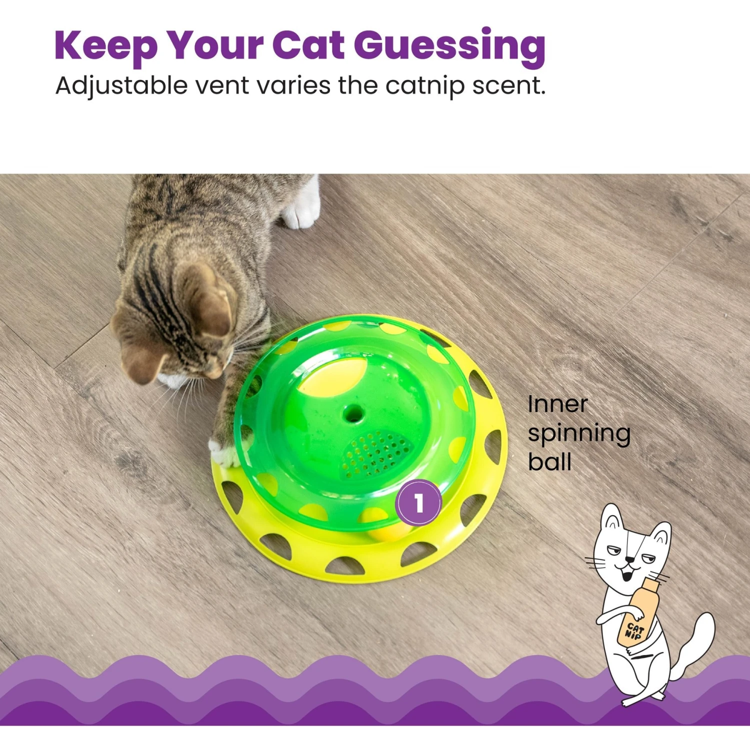 On your mark, get set… Take your kitty on a race with the Catnip Chaser Cat Toy. Perfect for group play or just one cat, this engaging toy has a ball in a track, peek-a-boo openings, and added catnip for an even bigger thrill. Engage your kitty’s instincts to chase, hunt, bat and play with a toy that tempts her with her favorite scent. Easy-to-fill vents open and close, so you can decide just how much catnip your cat will smell. Kitties are sure to be entertained by the rolling ball, plus the smell of catnip entices them by waking up their senses. There’s even a non-skid bottom, added with the safety of your cat in mind!