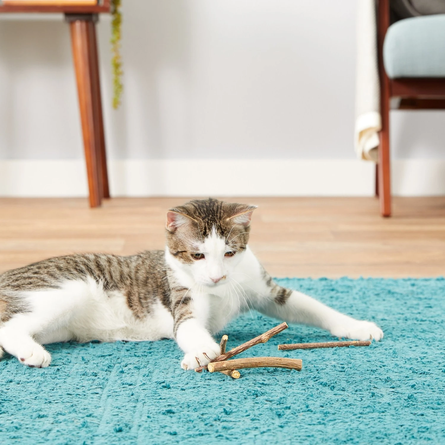 Put some pep in your feline’s step with CatTwig’s Silver Vine Sticks! Made from 100% organic and un-pressed Silver Vine, this all-natural, high-potency goody will have your little one purring, rolling, and pouncing in no-time. Commonly known as the catnip of Asia, this eco-friendly treat is a safe and holistic way to stimulate lazy cats while improving overall dental health and reducing stress. Simply introduce your little one to CatTwigs as you would any new toy and enjoy the extreme cuteness that unfolds. Plus, CatTwigs come in environmentally friendly re-sealable bags to ensure maximum freshness!