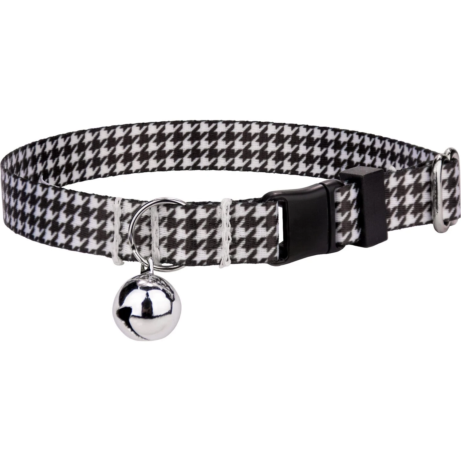 The Houndstooth Breakaway Cat Collar is a timeless accessory that’ll keep your kitty looking stylish and sophisticated for year after year. This lightweight collar was made in the USA from a soft yet durable polyester webbing that won’t scratch or irritate your furry friend’s sensitive skin. Featuring a bell and breakaway buckle, the accessory is paw-fect for any cat who loves to spend time exploring the great outdoors. The impressive hardware and photo-quality print make this black and white piece a no-brainer—no grey area about it!