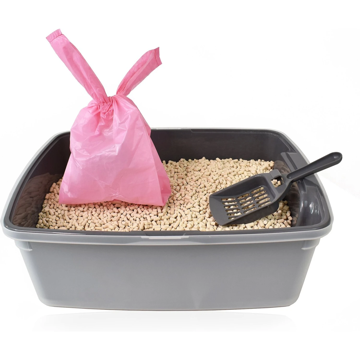Make litter box clean up duty a little less stinky with Doggie Walk Bags Citrus Scented Tie Handle Cat Litter Bags. These uniquely-designed bags feature one-at-a-time dispensing and a textured surface design that makes pulling apart the opening a breeze––no more struggling to open the bag! A light citrus scent and odor locking technology traps and disguises the smell. Plus, the extra-large size is big enough to fit most litter box scoop sizes, and convenient easy tie handles ensure it stays inside.