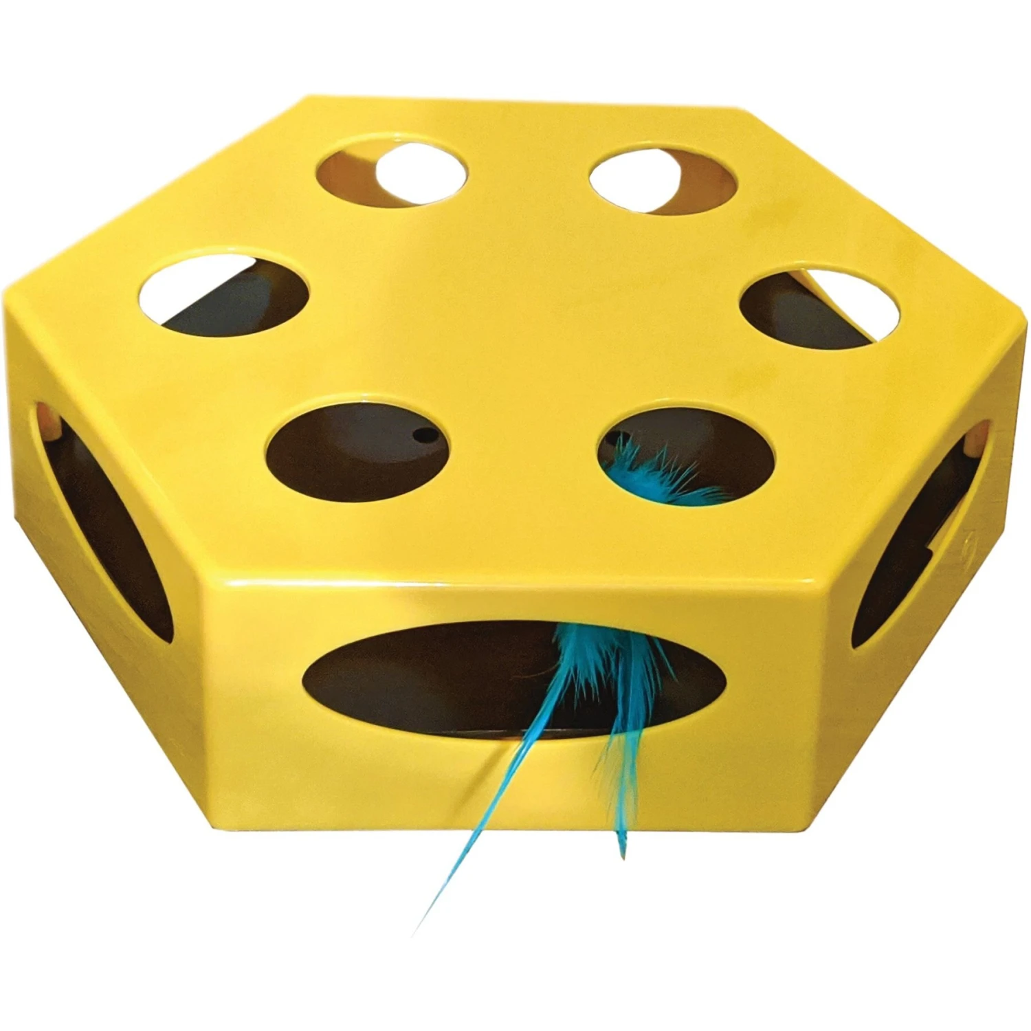 Be purr-pared for fun with the Ethical Pet Feather Frenzy Fun Electronic Cat Toy! This motion-activated toy starts working when your cat walks by—no paw-rents required. Watch as the spinning feather entices your cat to swat, bat and catch. It mimics real prey for more exciting and satisfying play! Plus, the included power switch helps conserve the battery while you’re away, sleeping or need some peace and quiet.