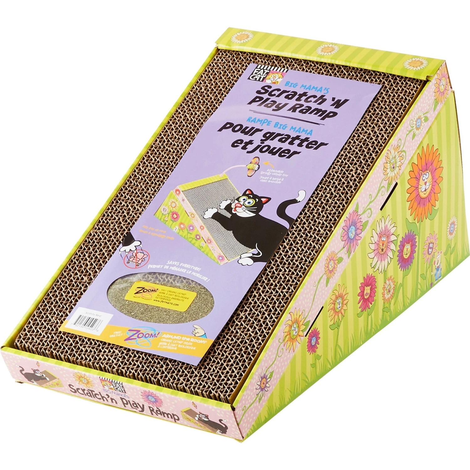 Fat Cat Big Mama’s Scratch ‘N Play Ramp provides an enticing scratching surface that cats can’t resist! With hidden nooks and crannies in the corrugated cardboard felines can groom and trim their claws daily. Save your furniture and other household items by directing their energy to this scratcher that is even more enticing when Big Mama’s Catnip that’s included is sprinkled on it! Not only is the catnip included but a small toy too. You and your furry feline can enjoy all of the benefits of this cat scratcher!