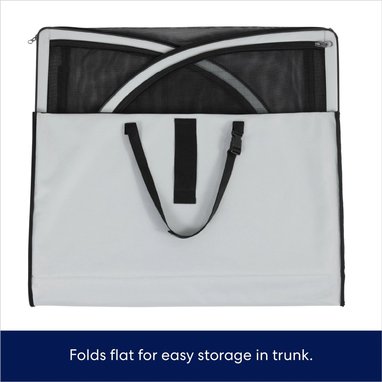 Frisco Travel Safety Dog & Cat Carrier, Large—Honk that horn, check those mirrors and let that tongue flap in the wind, because it’s time for a road trip! Riding with comfort and safety takes a backseat to nothing unless it’s this travel car seat carrier from Frisco by Chewy! In just three simple steps, your dog will be ready to travel everywhere with the fam. Simply loop the straps around the headrest, push the anchors through the seat gaps and pass the seat belt through the seat belt path. Done and done. Oh, and it’s also got mesh sides so that your canine companion can take in the awesome scenery that zooms by. When the trip is over, the carrier can fold flat for easy storage until it’s time to hit the road again.