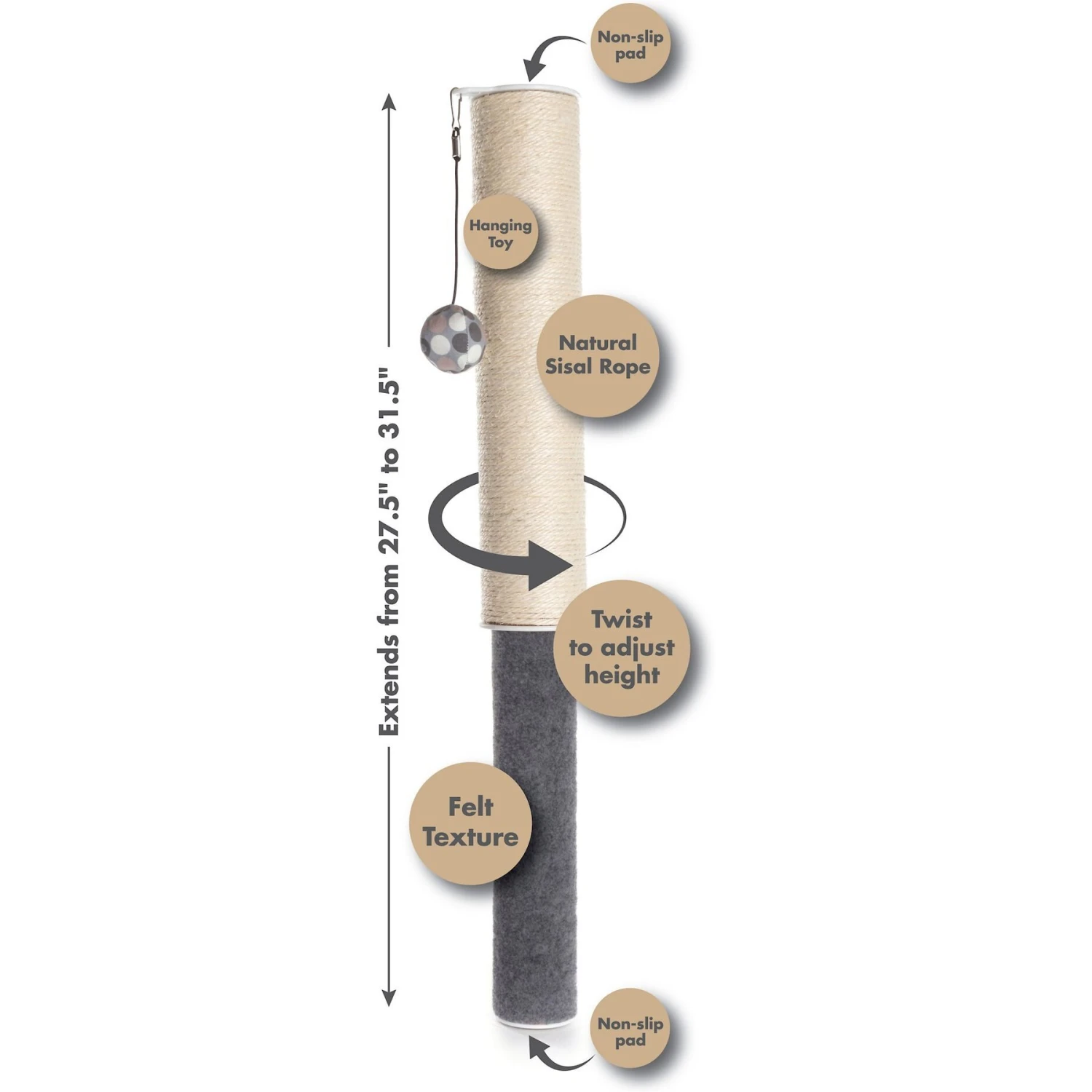 The Hauspanther Dual Surface Adjustable Under-Table Sisal Cat Scratching Post is a sleek and sturdy cat scratching post that takes up minimal space in your home. This convenient post easily adjusts, so you can take advantage of unused space and fit it under most tables! The non-slip pads located on the top and bottom hold the scratcher in place and prevent your floors from becoming damaged. This post is also designed with natural sisal rope that can withstand repeated scratching, as well as a dangling toy to entice your kitty to play and scratch!