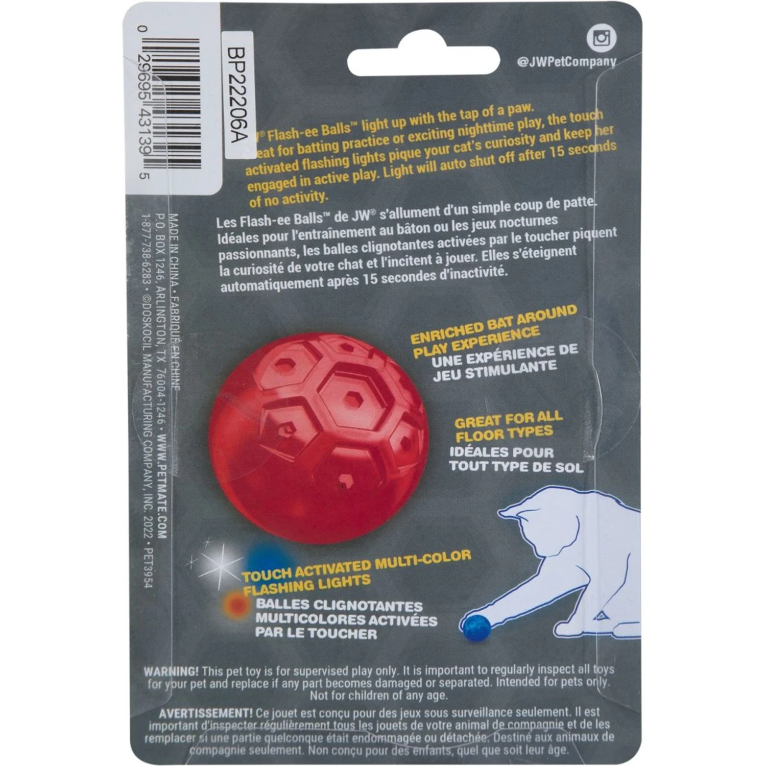 - Flashing lights activate with the tap of a paw.
