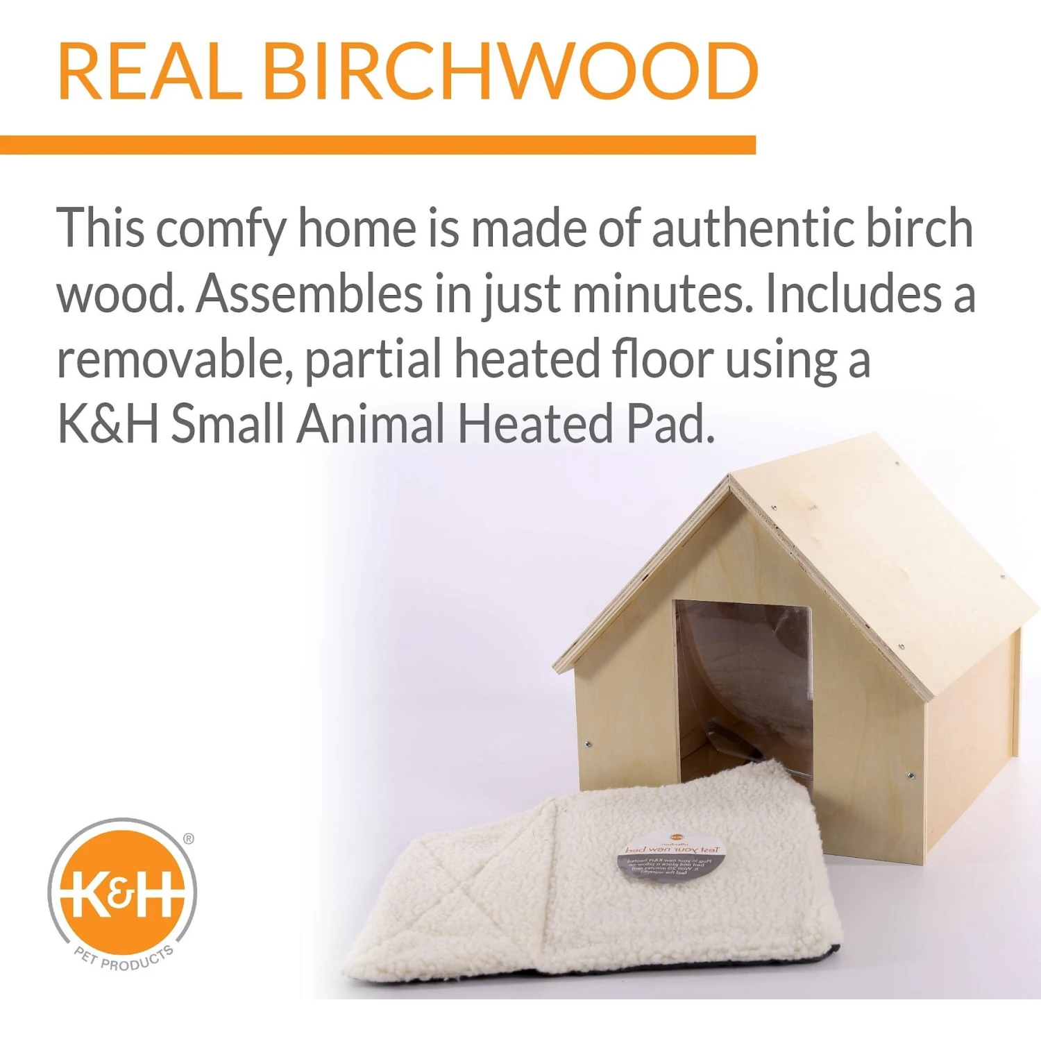 Give your furry friend a warm place to rest with the K&H Pet Products Birchwood Manor Thermo-Kitty Home. Made with real birch, this home is easy to assemble and comes with a heated pad for those cooler nights to keep your paw-tner warm. It features two door flaps so your companion can come and go with ease. This home also has a UV-resistant coating to keep it looking good throughout the elements and can be painted to match any decor. Ideal for indoor or outdoor use, the K&H Pet Products Birchwood Manor Thermo-Kitty Home provides protection and comfort for your sidekick.