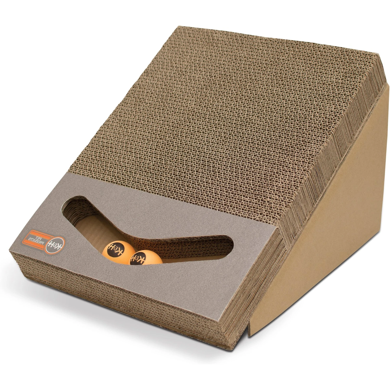 - Two balls roll back and forth inside the scratcher for interactive play that cats love.