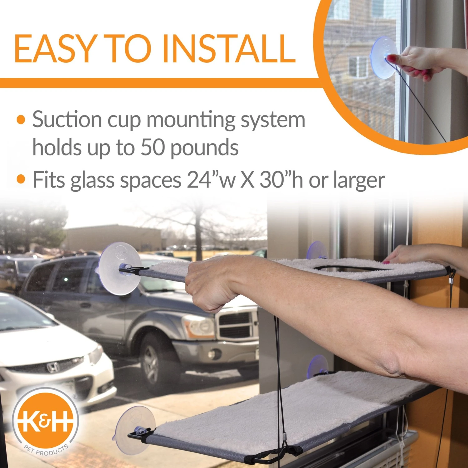 Mounting and suction cup maintenance: 1) Thoroughly clean your window, making sure the window is completely dry and free from residue. 2) Clean the suction cups with a mild detergent and rinse thoroughly. Dry suction cups completely. 3) Regularly clean your window and suction cups, monthly is recommended. HELPFUL HINT: Warm suction cups are easier to mount than cold. Try soaking the suction cups in hot water or leave them in the sun for a few minutes to help warm!; Remove the cover from the kitty sill. Machine wash cover only, separately. Mild detergents, no bleach. Cold water, gentle cycle. Air or line dry. Dry completely before reassembly.