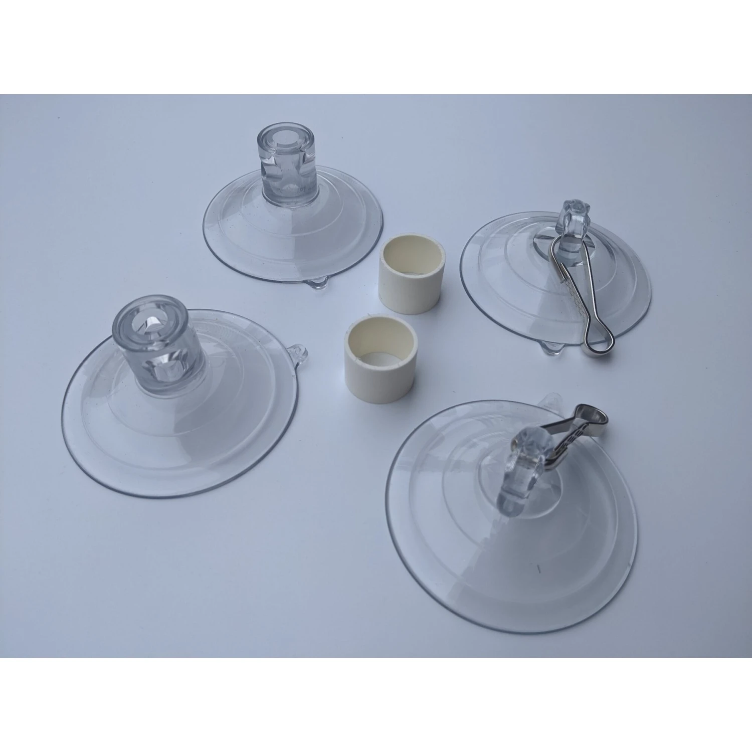 Kitty Cot Original World’s Best Cat Perch Giant Replacement Suction Cups give you a set of four patented suction cups for your Kitty Cot. Each cup is 3.25 inches in diameter and rated to hold 12 pounds of kitty weight. These heavy-duty suction cups are made in the USA by Adams Manufacturing and will attach to most smooth, non-porous surfaces, such as windows. They’re easy to install and remove by pulling on the release tab to break the suction. Cleaning them is simple by washing with warm, soapy water and gently drying with a lint-free cloth. The top two suction cups have loops with snap clips for attaching the wire cables that support the Kitty Cot. You can hang a lightweight cat toy from these top suction cups for a little extra playtime fun.