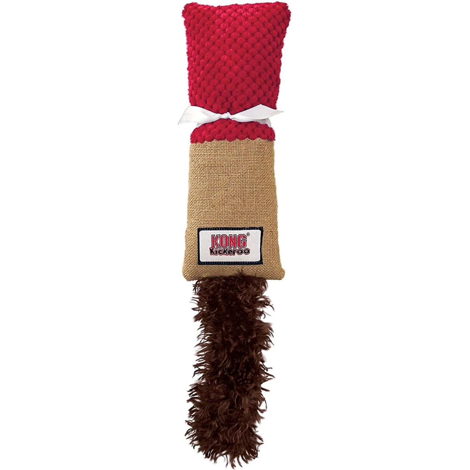 Watch your feline friend fulfill his instinctual desires to attack, wrestle and cuddle with the KONG Kickeroo Cuddler Cat Toy! This tri-colored plush toy is designed with 3 different textures including burlap for when your kitten is itching to fulfill her scratching desires. The Kickeroo Cuddler cat toy allows your cat to do just that—kick and cuddle! This versatile toy also features stimulating crinkles, KONG Premium North American Catnip, and a fluffy tail making it purr-fect for bunny-kicking, cat cuddling and allows for a fun game of bat and roll. It is suitable for all ages and breed types and will add some extra daily fun that your cat will love!
