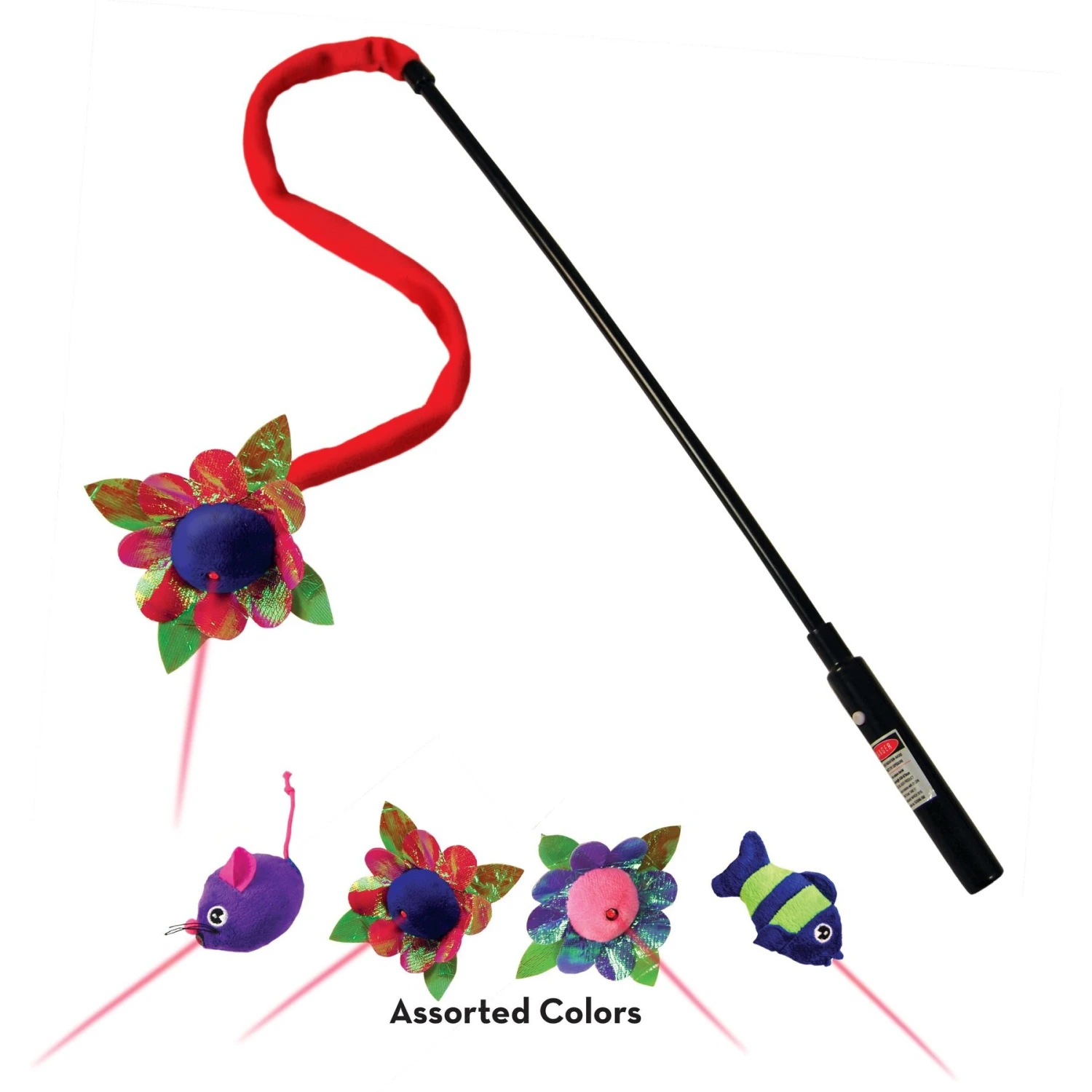- Colorful teaser toy encourages a variety of play styles including batting, chasing, swatting and bunny-kicking.