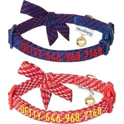 Blueberry Pet Glam Cutie Diagonal Striped Breakaway Bow Tie Personalized Cat Collar, 2 Count