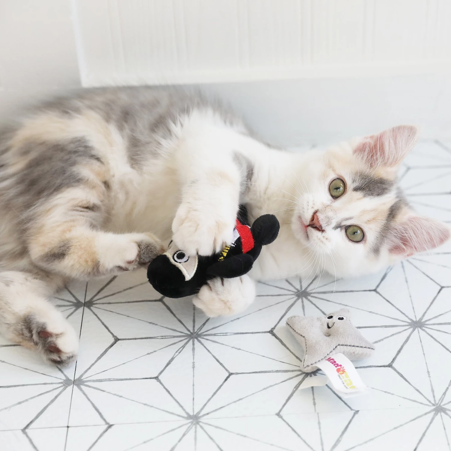 Get ready for a kicking good time that your kitty won’t see coming! With the Ninja & Throwing Star Catnip & Silverline cat toys from Mad Cat, you can introduce your favorite feline to a delightful duo that’s sure to curl her whiskers. Filled with an exclusive blend of catnip and silvervine, these iconic stuffies are potent, pure, playful and pesticide-free. Even kitties who aren’t interested in catnip may be drawn to silvervine— a different plant that can create a similar buzz! Ideal for batting, kicking, cuddling and throwing, these playtime partners are made of high-quality plush and irresistible embroidery.