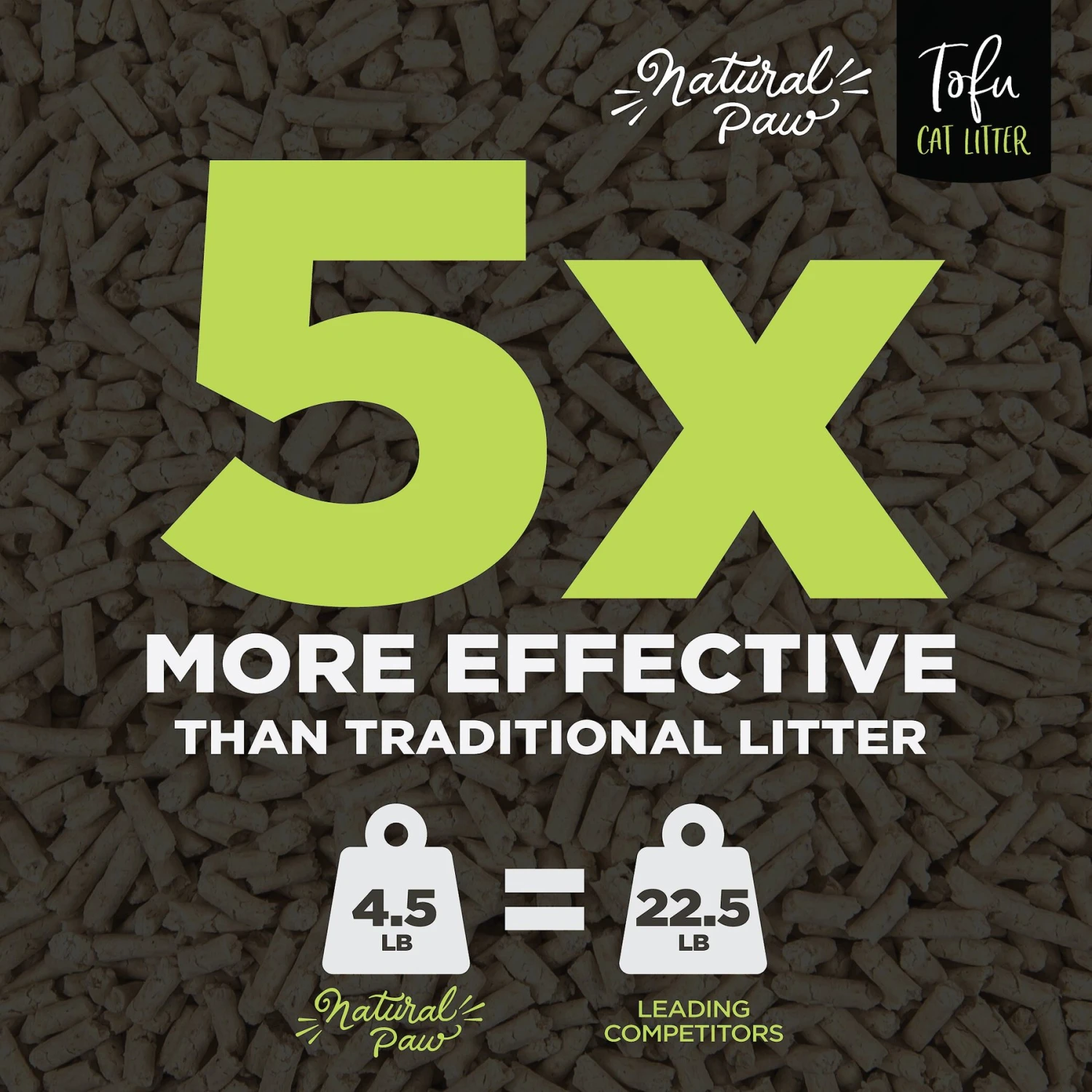 Natural Paw Tofu Cat Litter Refill Bag consists of 99.9% dust-free pellets to help reduce tracking, keep surfaces clean and allow your family to breathe easy. This clumping litter is purr-fect for multi-cat households and uses natural odor control and a subtle lavender scent to help keep your home smelling fur-esh and clean. It’s 100% natural and completely flushable, biodegradable and compostable.
