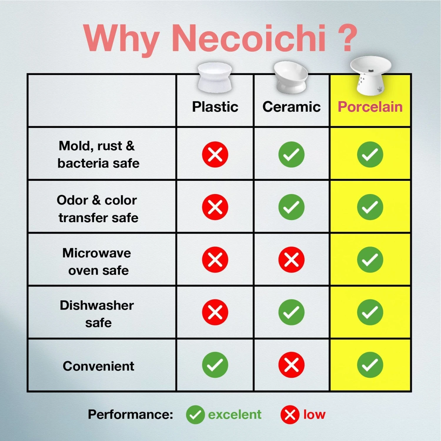 Help your feline friend eat in comfort with Necoichi Extra Wide Raised Cat Food Bowl. Raising the height of your kitty’s food bowl helps reduce strain on her neck, making it especially purr-fect for senior sidekicks or cats with arthritis. Not only is this bowl higher than others on the market for added comfort, but it’s also designed with an inner lip to help reduce spills and is extra wide to help reduce whisker fatigue. The unique curved shape helps keep food centered, so that she isn’t chasing the last few drops around the bowl. Plus, the design is paw-sitively adorable!