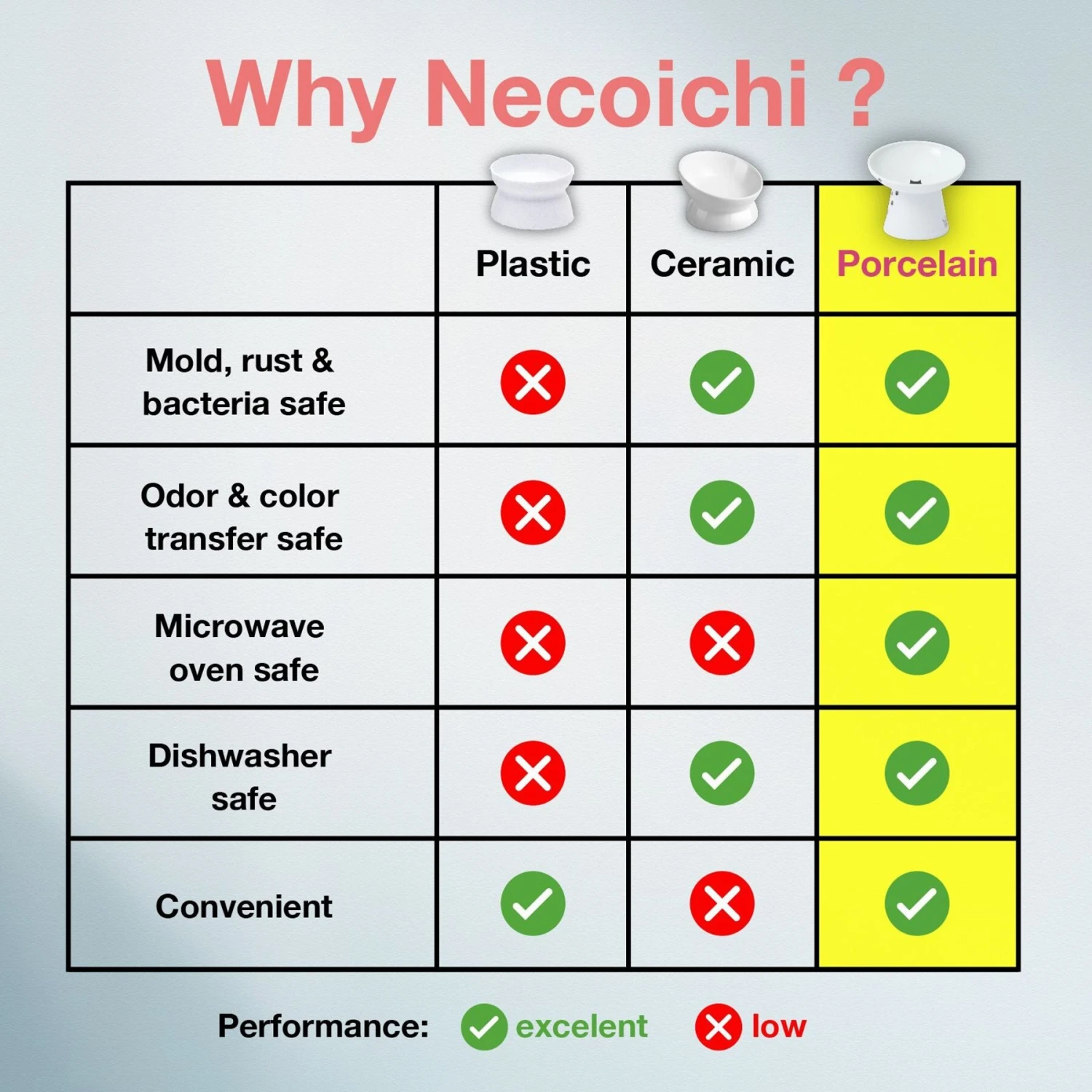 The Necoichi Tilted Stress Free Raised Cat Food Bowl helps take the stress out of mealtime! This innovative bowl is tilted, allowing your feline friend to dine in comfort. The tilted lip helps reduce neck fatigue as your kitty eats and the anti-spill lip combined with the bowl shape helps keep her food centered. That means, she will be able to get the last bite with less stress! And since this bowl has a wide lip, it’s purr-fect for flat-faced felines and it can help reduce whisker fatigue.