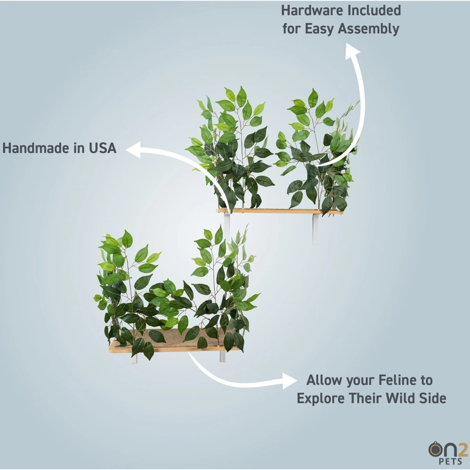 - Unique shelves that feature foliage like your cat would see in the wild.