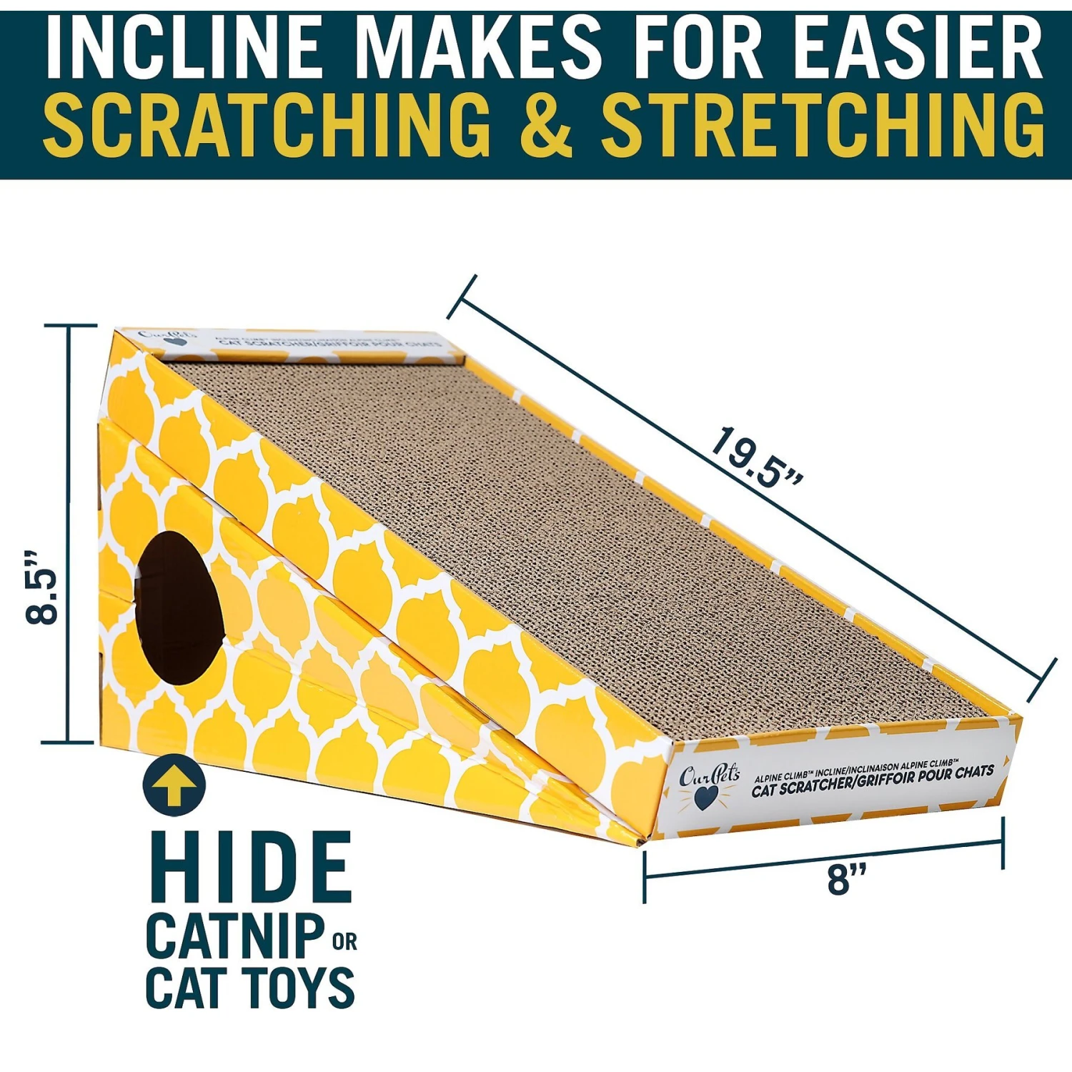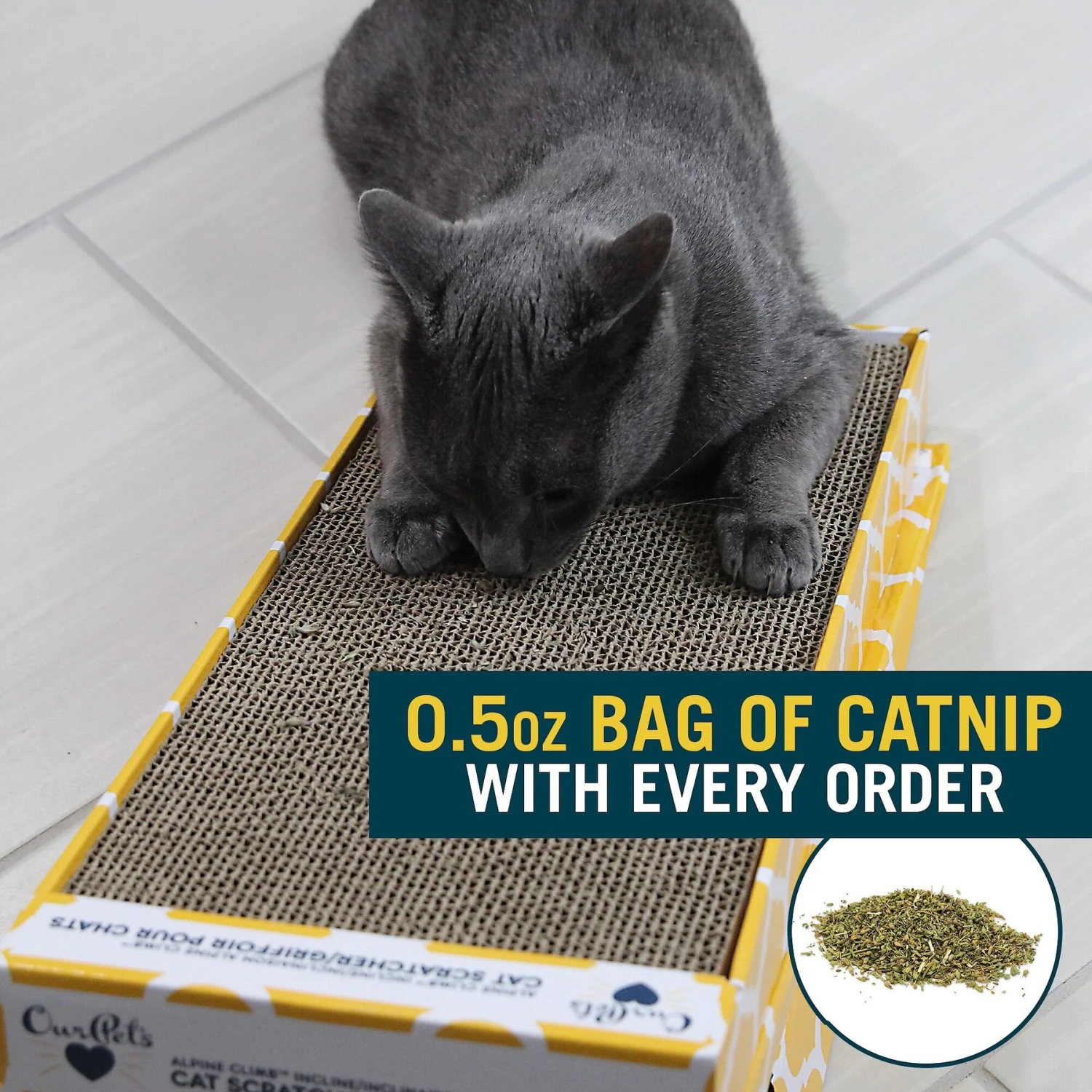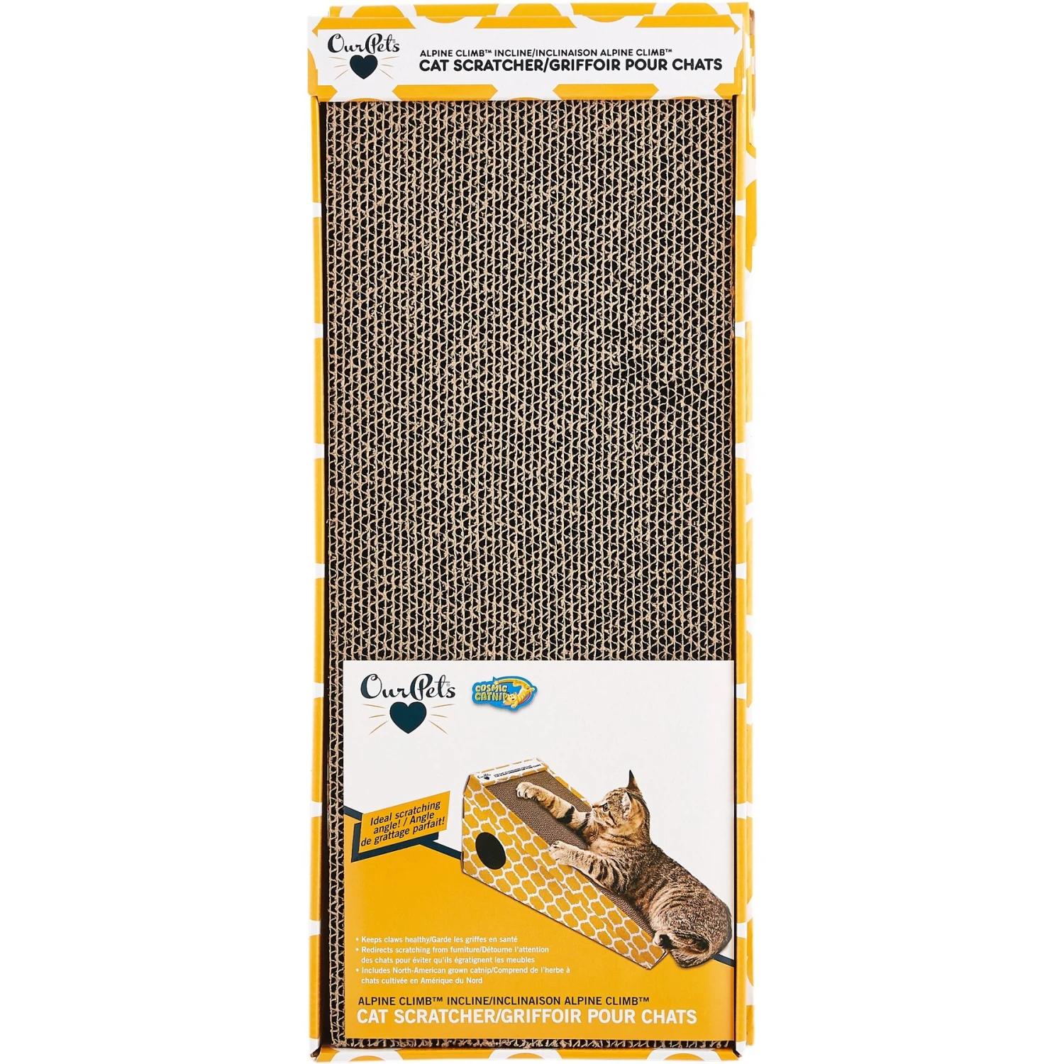 The OurPets Alpine Climb Cat Scratcher provides an enticing scratching surface that cats can’t resist! With hidden nooks and crannies in the corrugated cardboard felines can groom and trim their claws daily. Save your furniture and other household items by directing their energy to this scratcher that is even more enticing when the catnip that’s included is sprinkled on it! Not only is the catnip included but a small toy too. You and your furry feline can enjoy all of the benefits of this cat scratcher!