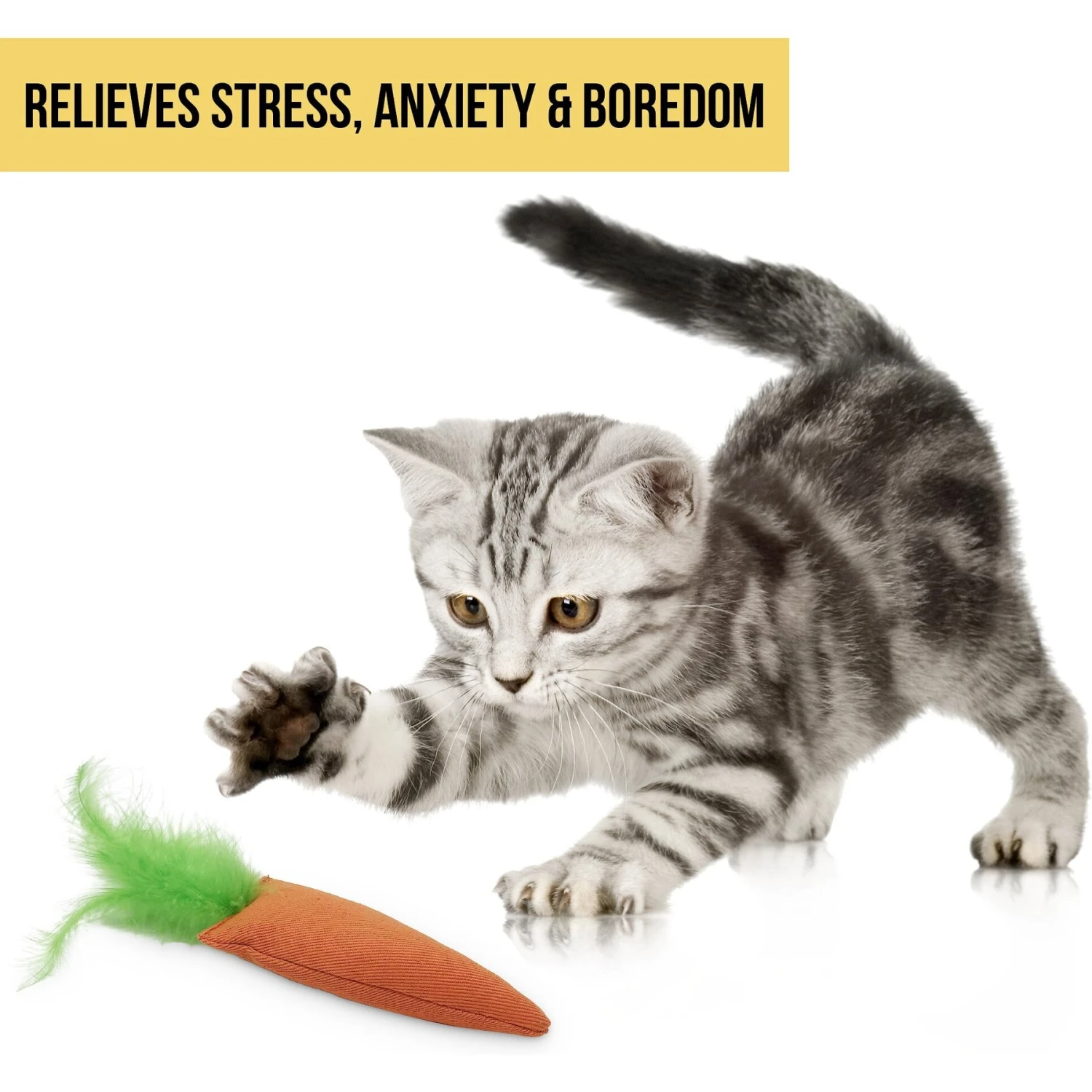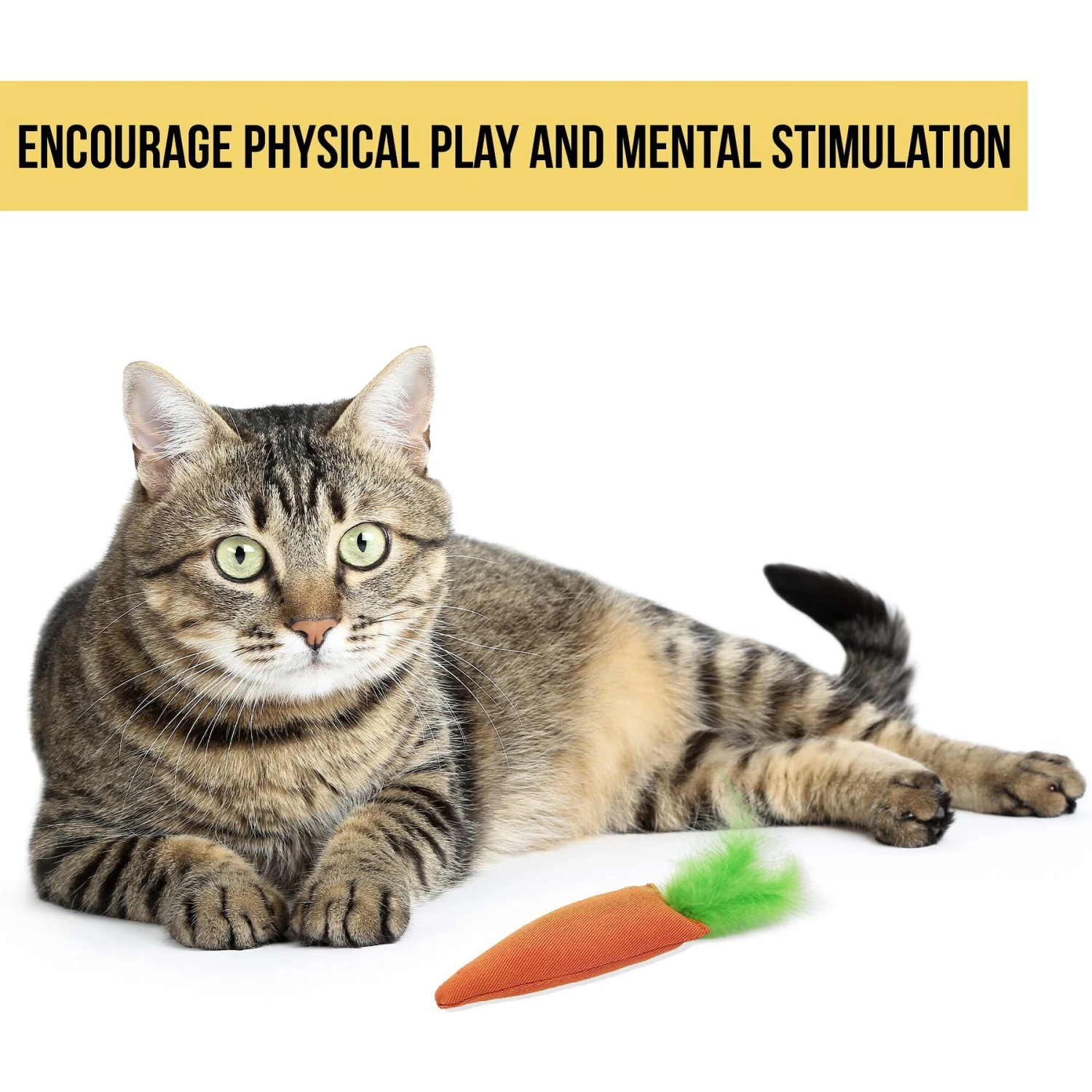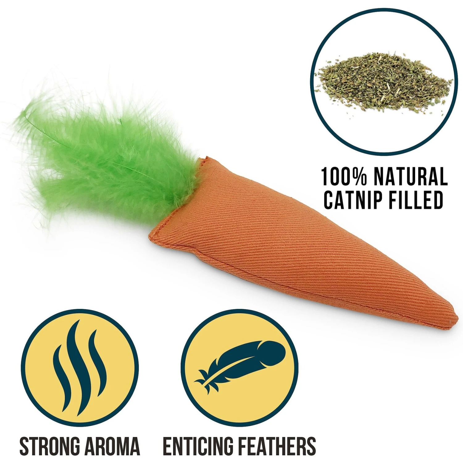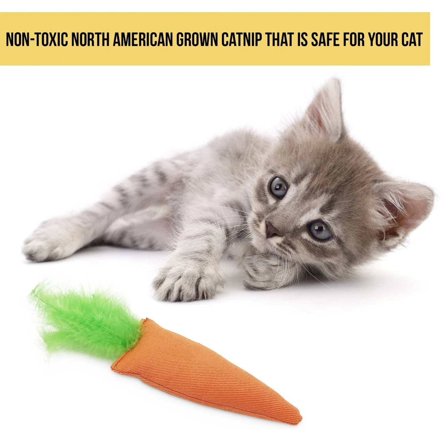 The OurPets Catnip 24 Karat Cat Toy will keep your cat entertained and energized. Filled with North American grown catnip this charming toy will stimulate your feline’s senses and awaken curiosity. Cats can’t wait to pounce on this vegetable. The fun shape and aroma helps to reduce boredom and inappropriate behaviors. Chock-full of catnip, every swat, bat or bite releases the aromatic fragrance to keep kitty amused for hours.