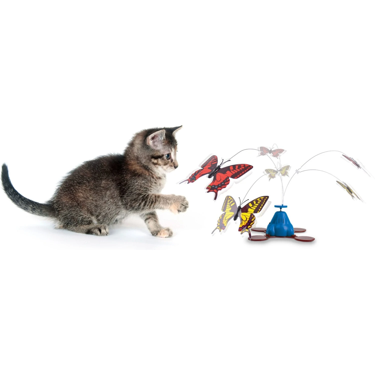 - Two butterflies move, vibrate and soar on a realistic flight path that entices your cat and provides exercise.