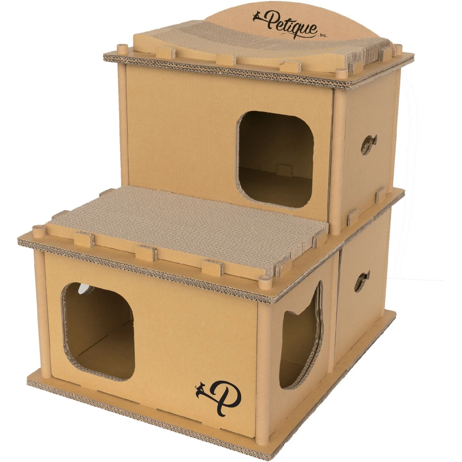 Give your feline friend a cozy place to rest with Petique Feline Villa Cat House! Made with 100% non-toxic, eco-friendly materials, this cat house is an environmentally responsible way to give your cat his own purrsonal space. Its neutral-colored, non-toxic fabric is safe for your cat and complements most household decor. This fun house has three levels with sunbathing perches, compartments, and scratching boards that can keep multiple cats occupied at once. These entertaining features help reduce excess energy and stress by letting your cat live out his natural desire to scratch, groom, and nap. It is easy to set up as well, as no tools are required!