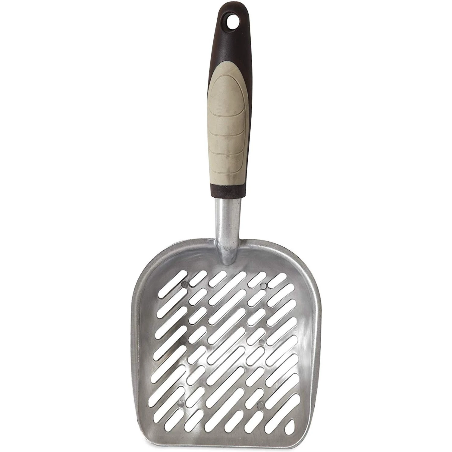 Cleaning up after your kitty doesn’t have to be a hassle, so help make life easier with Petmate’s Metal Litter Scooper! This scooper is made of durable die-cast aluminum and is designed to lift large amounts of waste. As you scoop up your kitty’s droppings, the slotted design allows clean litter to fall right back into the box, while the sharp edges make it easy to scrape off waste. It features a two-toned, ergonomic handle that’s made of pliable thermoplastic rubber (TPR) for added comfort and it has a hole at the end, so you can hang the scooper up for easy storage. So, make litter box maintenance a cinch with this Petmate Metal Litter Scoop!
