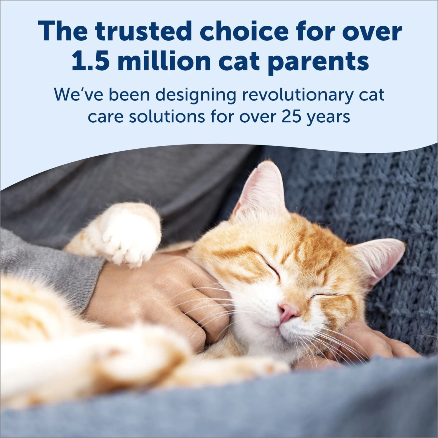 - Works with clumping litter and most other litter types (sold separately)—no trays needed.