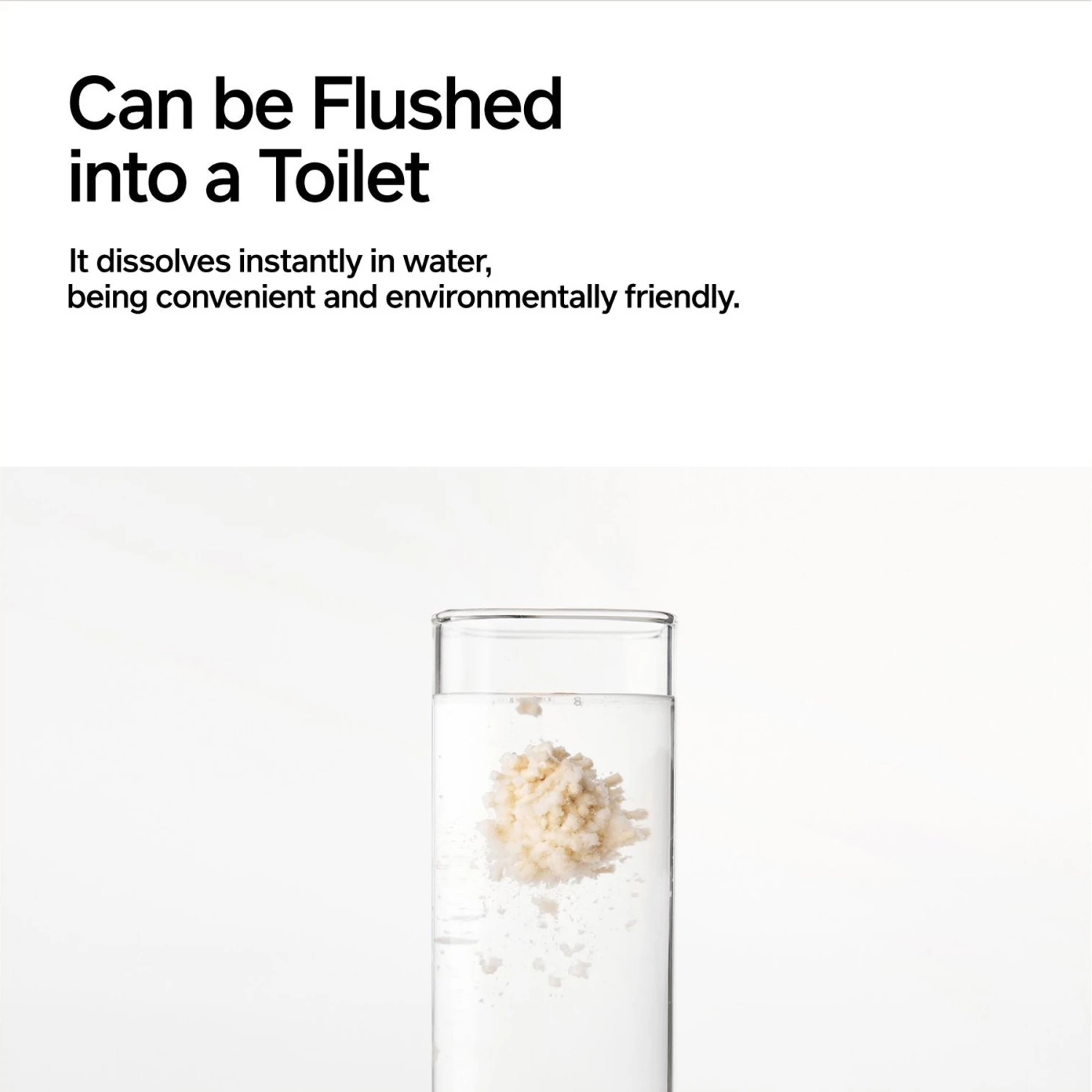 (1) Minor air leaks of vacuum package during transport won’t impact usage(2) When disposing of used cat litter via the toilet, use the appropriate jurisprudence so as to avoid clogging. (3) To ensure disposable clumps remain in balanced proportions to average drain sizes, Pidan advises that cat litter be spread to a thickness of approximately 2 inches in the litter box.(4) In effort to ensure a beneficial and healthy lavatory experience for your cats, Pidan recommends changing cat litter daily.(5) Customers may notice a variance in color between packaged litter batches. Please note that this is perfectly normal as all of our materials are natural and do not follow generic artificial production procedures that might cause consistent color.
