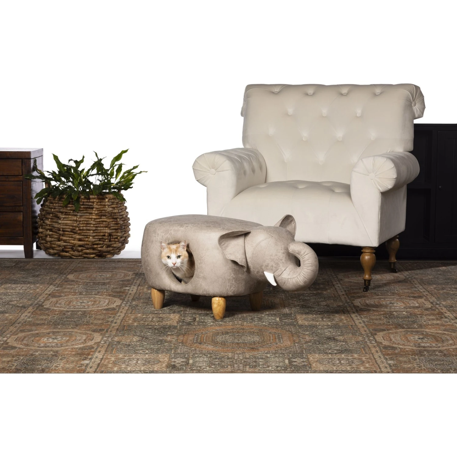 Provide your fur baby with an adorable place to lounge with you with Prevue Pet Products Elephant Dog & Cat Ottoman. This cute elephant shaped footstool gives you ample space to kick up your feet while also giving your kitty or pup a convenient hideout where he can snooze, rest, or hide from life’s daily stresses. Made of luxurious, fashionable faux-leather and comfortable polyester fabric, this ottoman can add some whimsical flair to your home decor. The solid pinewood legs ensure the ottoman stays firmly in place whether you or your fur babies use them. This ottoman is ideal for indoor use only.