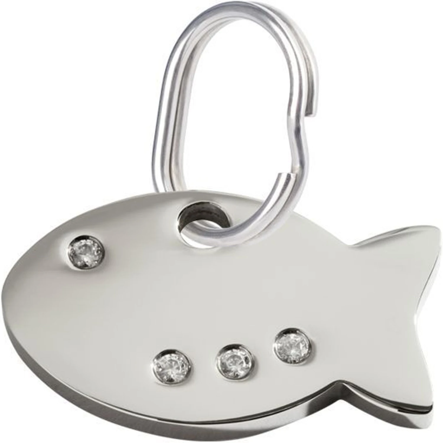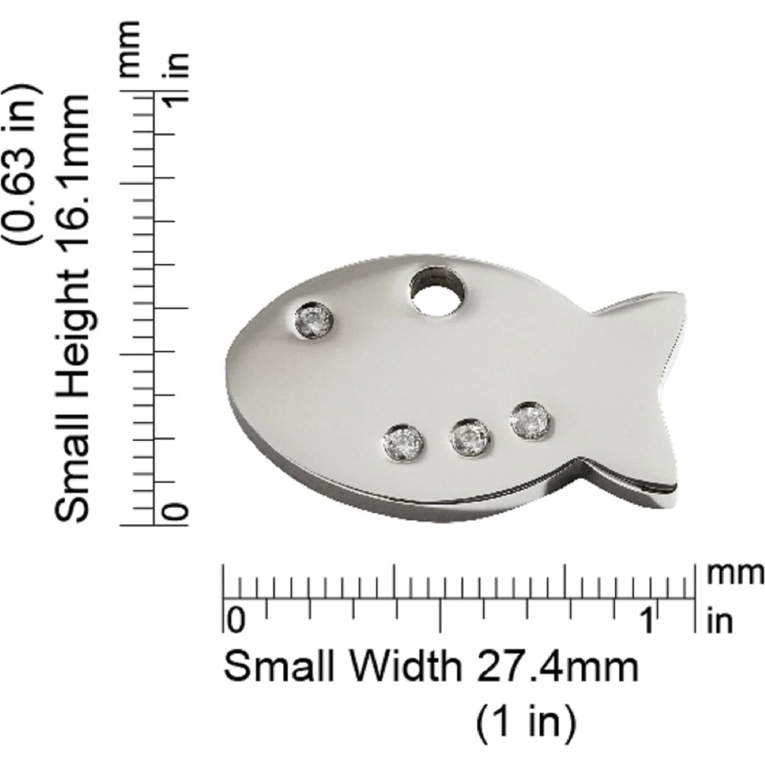 Feel safe and sound knowing your pet is equipped in case of an emergency with the Red Dingo Fish Crystal Diamante Personalized Stainless Steel Dog & Cat ID Tag. Intended to last long and strong, they’re made from sturdy stainless steel that is hand polished and buffed. They come with a split ring and an etched engraving of your choice, making sure both you and your pet feel a little more secure.