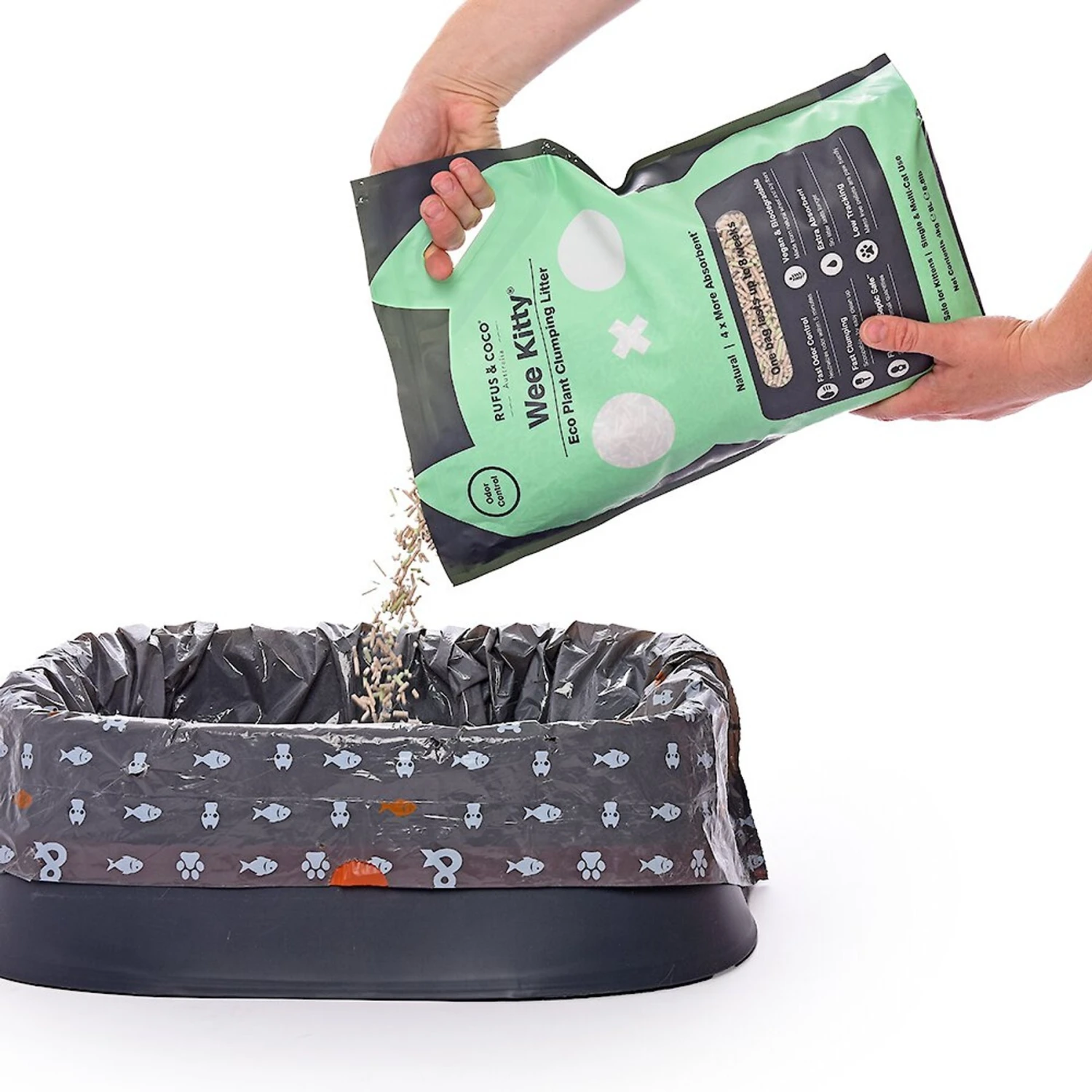 If your furry friend is hesitant to change litter types, simply sprinkle some of the existing litter over the top of Rufus & Coco Wee Kitty Eco Plant Clumping Litter.