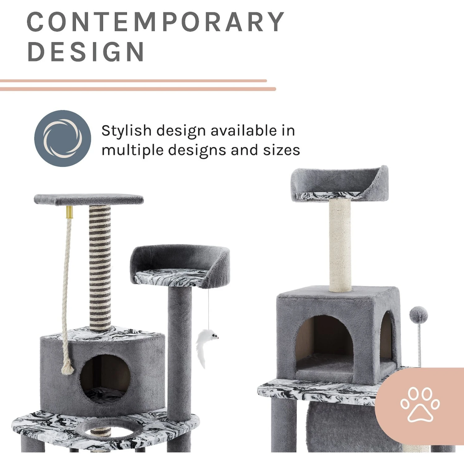 Sam’s Pets Dazzle 47-in Cat Scratching Tree is designed with multiple tiers, toys, scratching posts and places to climb! Your feline friend can relax on one of the several perches or lounge in the hammock—the polyester fur provides maximum comfort. This cat tree is big enough to support multiple kitties and it’s constructed from high-quality materials that are durable and built to last!