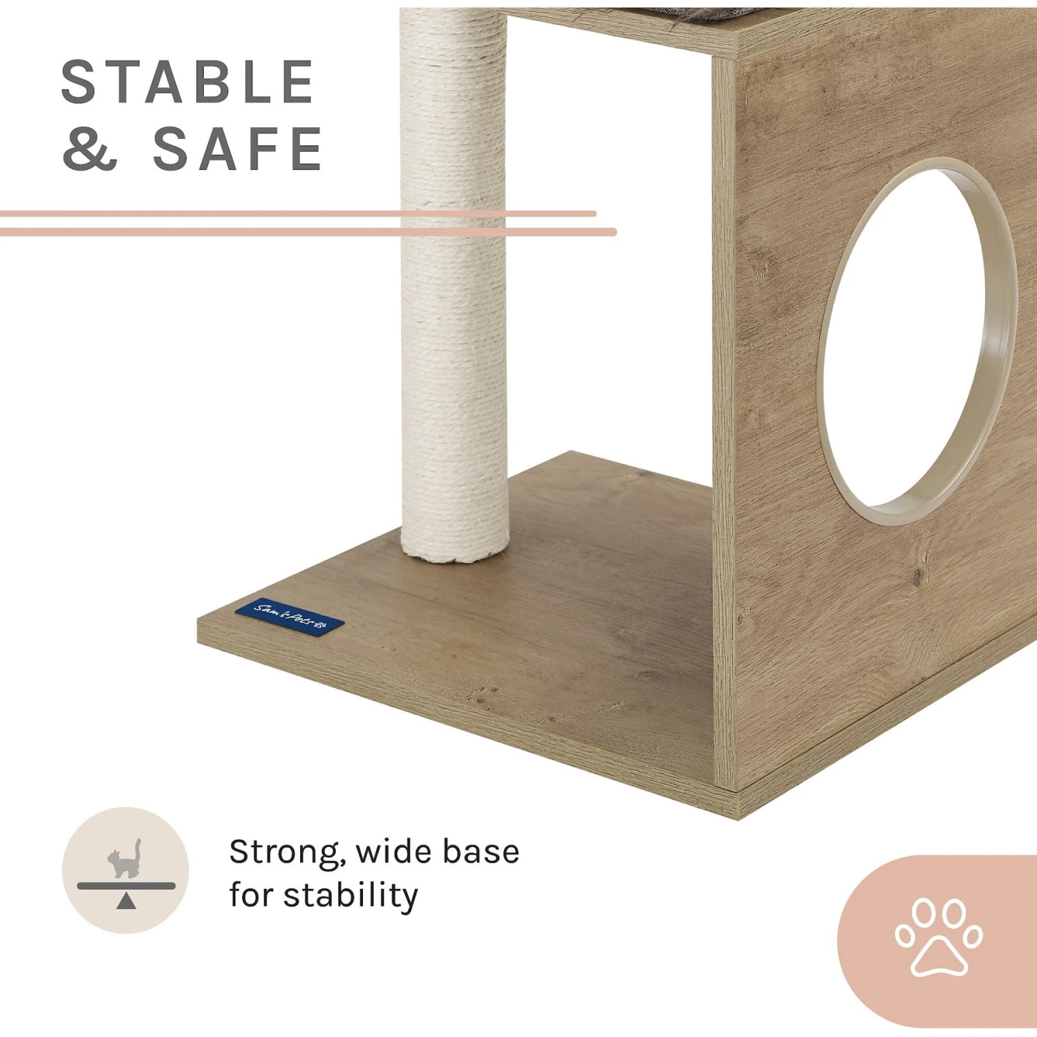 Sam’s Pets Sheree 17-in Cat Tree has a beautiful sleek and modern design that purr-vides your feline friend with a place to rest and play. Whether she’s scratching the built-in sisal post, curling up on the cushion, or climbing and jumping throughout the cat tree, she’s bound the have a paw-some time! And, not only will it look stunning in your home, but you’ll feel extra confident knowing that this cat tree was built using high-quality materials. This enriching design is available in a variety of neutral tones (assortment may vary).