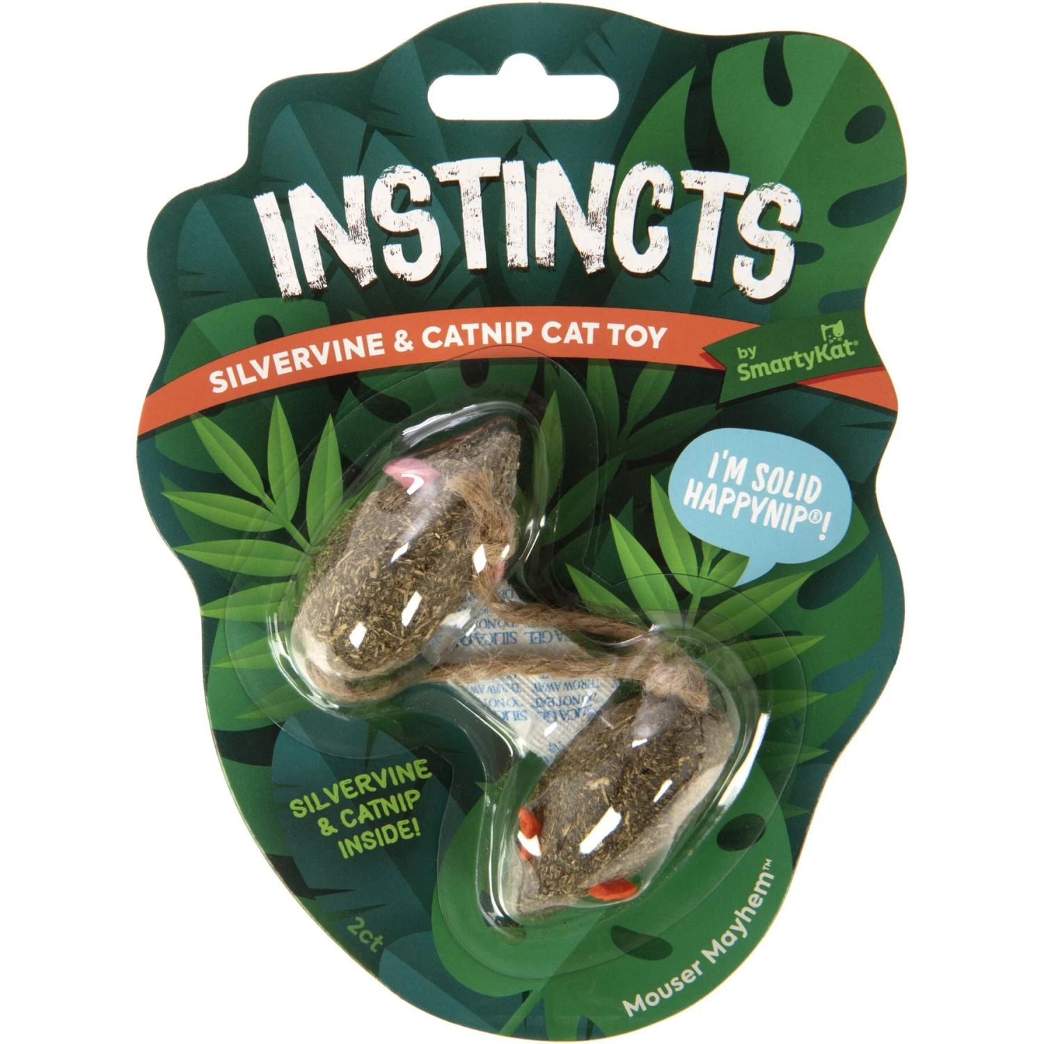 Treat your furbaby to su-purr fun playtime with the Instincts by SmartyKat Mouser Mayhem HappyNip Silvervine & Catnip Compressed Cat Toy. These mice-shaped toys feature dangling jute cord tails for carrying. They’re purr-fect for swatting and pouncing. These toys are filled with silvervine and catnip to entice your little hunter and make for extra frisky playtime.