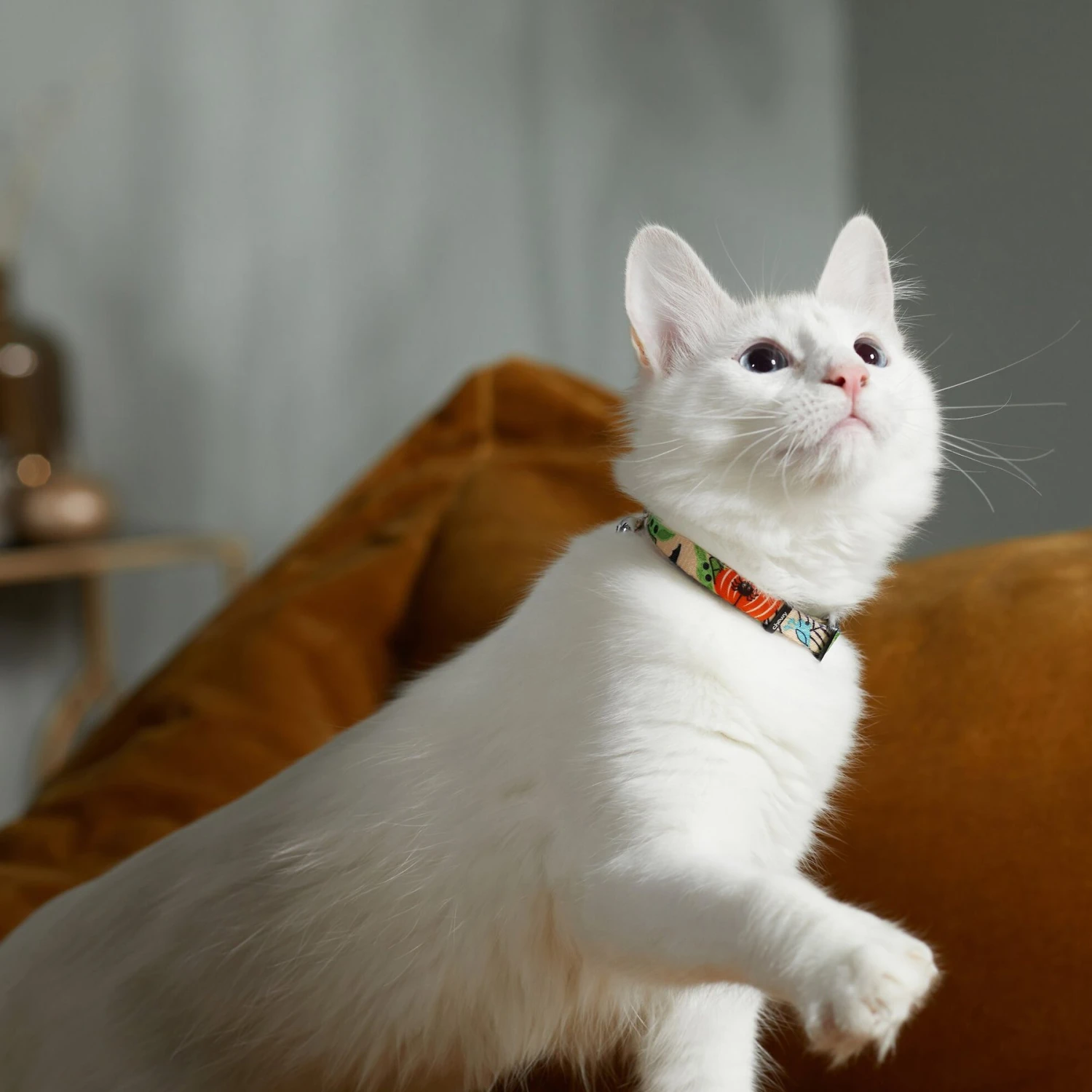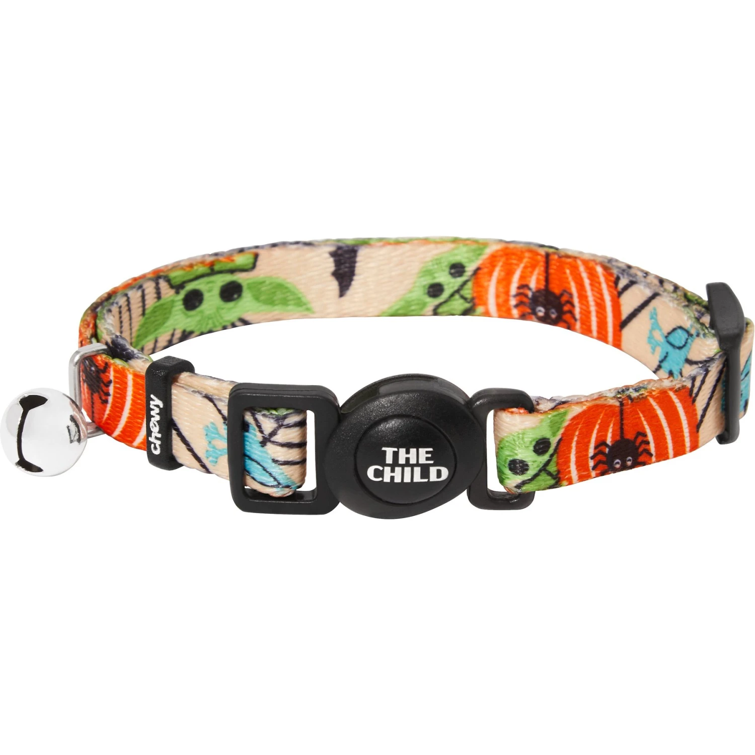 Add some spooky style to your cat’s look with this STAR WARS The Mandalorian The Child Pumpkin Cat Collar, featuring pumpkins and The Child from Star Wars: The Mandalorian. This collar is designed with your fur friend’s comfort in mind, featuring high-quality polyester webbing and sturdy plastic hardware with rounded edges that don’t poke. The collar includes a metal ring for an ID tag and an optional wildlife safety bell that lets other animals know when your kitty’s prowling around the galaxy. It’s adjustable too, fitting cats eight pounds and over with necks eight to twelve inches around. This adorable intergalactic aesthetic will rock your kitty’s planet, only available at Chewy!