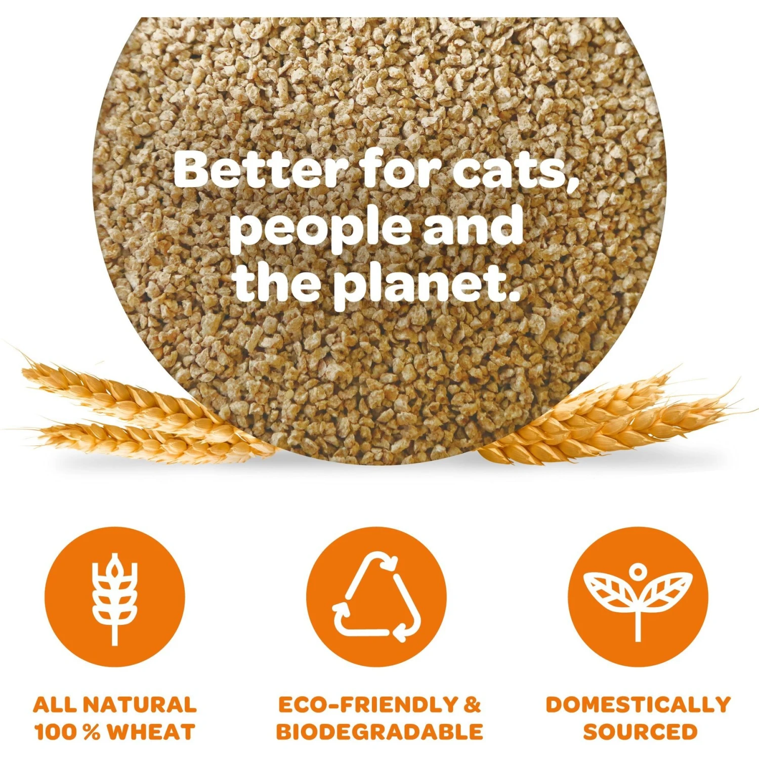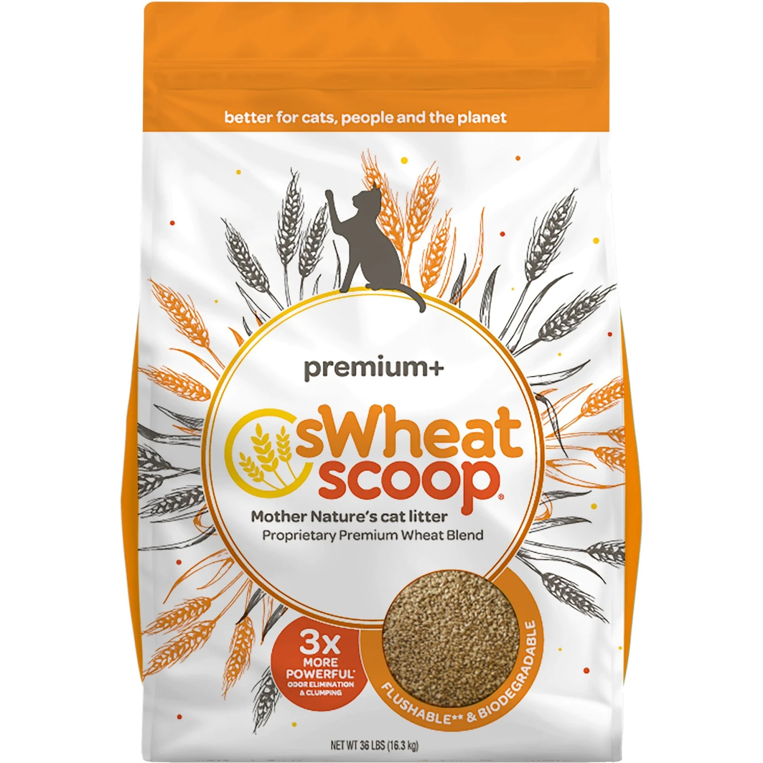Fill your litter box with sWheat Scoop Premium+ Unscented Clumping Wheat Cat Litter. Purr-fect for single- or multi-cat households, this litter is crafted from biodegradable wheat—the wheat starches help trap odors on contact, while natural enzymes help quickly neutralize urine and ammonia odors. This high-performing litter has no added dyes, perfumes, dust or harmful ingredients found in other clay litters, plus it’s 100% biodegradable!