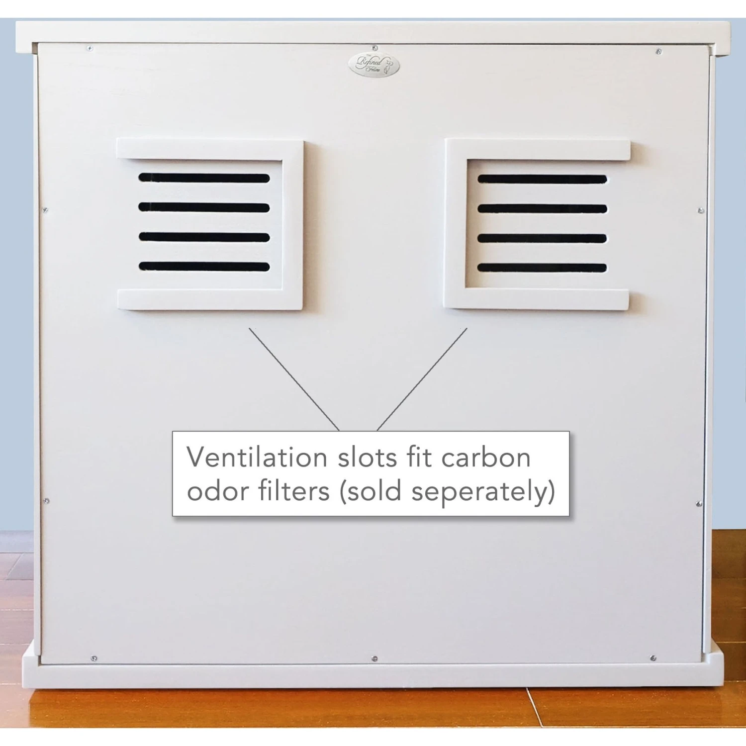Discreet meets chic with The Refined Feline Deluxe Cat Litter Box! Your cat will enjoy a purrfectly private spot to do their business all hidden behind a stylish design. This litter box cabinet is customizable with several front panel and feet styles, as well as colors to choose from, so you can match it to your home’s decor. It also features a painted oak veneer surface that helps repel liquid and can easily be wiped clean. The internal plastic litter liner with high walls contains stray litter, and the top storage drawer is perfect for storing your litter and kitty accessories. Choose to assemble a right or left side entry panel based on your space, and keep odors contained with the rear ventilation slots designed to fit universal carbon odor filters (not included). Please note that assembly is required, tools are included and the litter liner is not leak-proof, so a tray is still required.