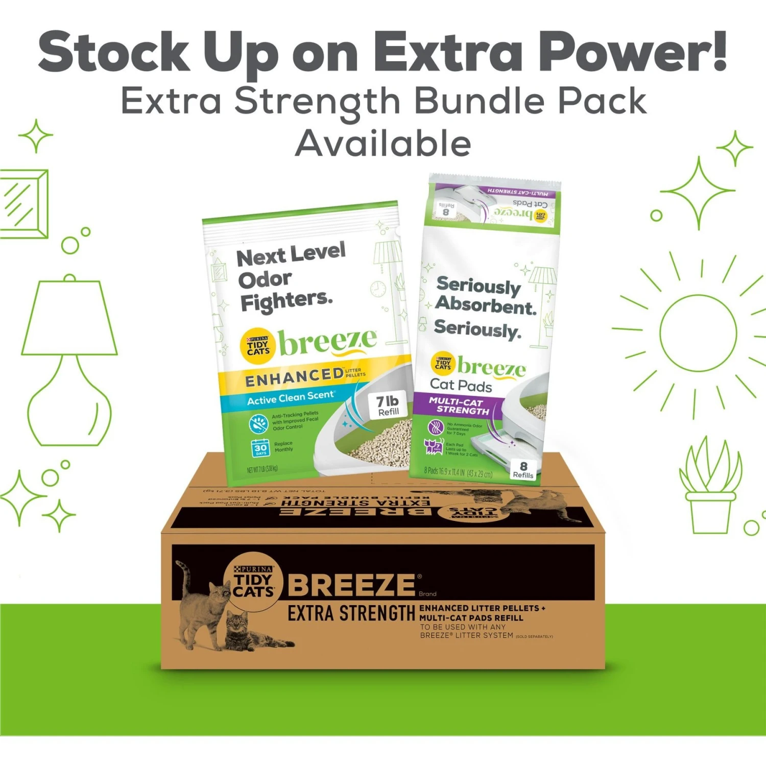 Zip through your cat litter box to-dos with Purina Tidy Cats Breeze Litter System Morning Fresh Scented Cat Pad Refills. These scented cat litter pads work with all Tidy Cats Breeze Litter Systems (sold separately), absorbing liquids to keep the cat litter box dry and kitties comfy. Breeze cat litter pads help prevent odors, too. Each super-absorbent kitty litter pad helps keep ammonia odor from forming for one week for one cat. After one week, simply remove the disposable cat litter box pad and replace it with a new one. Absorb. Toss. Replace! Cat litter box chores are easier than ever with the Breeze kitty litter system. Plus, each scented cat litter pad wows with a Morning Fresh fragrance to help you keep your home smelling like home. Plus, these kitty litter pads are made for regular use by multiple cats, helping your entire feline family feel comfy in the cat litter box.