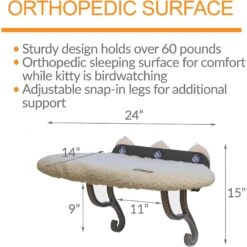K&H Pet Products Kitty Sill Cat Window Perch Shelf Cushioned Cat Window Seat, Unheated, Gray