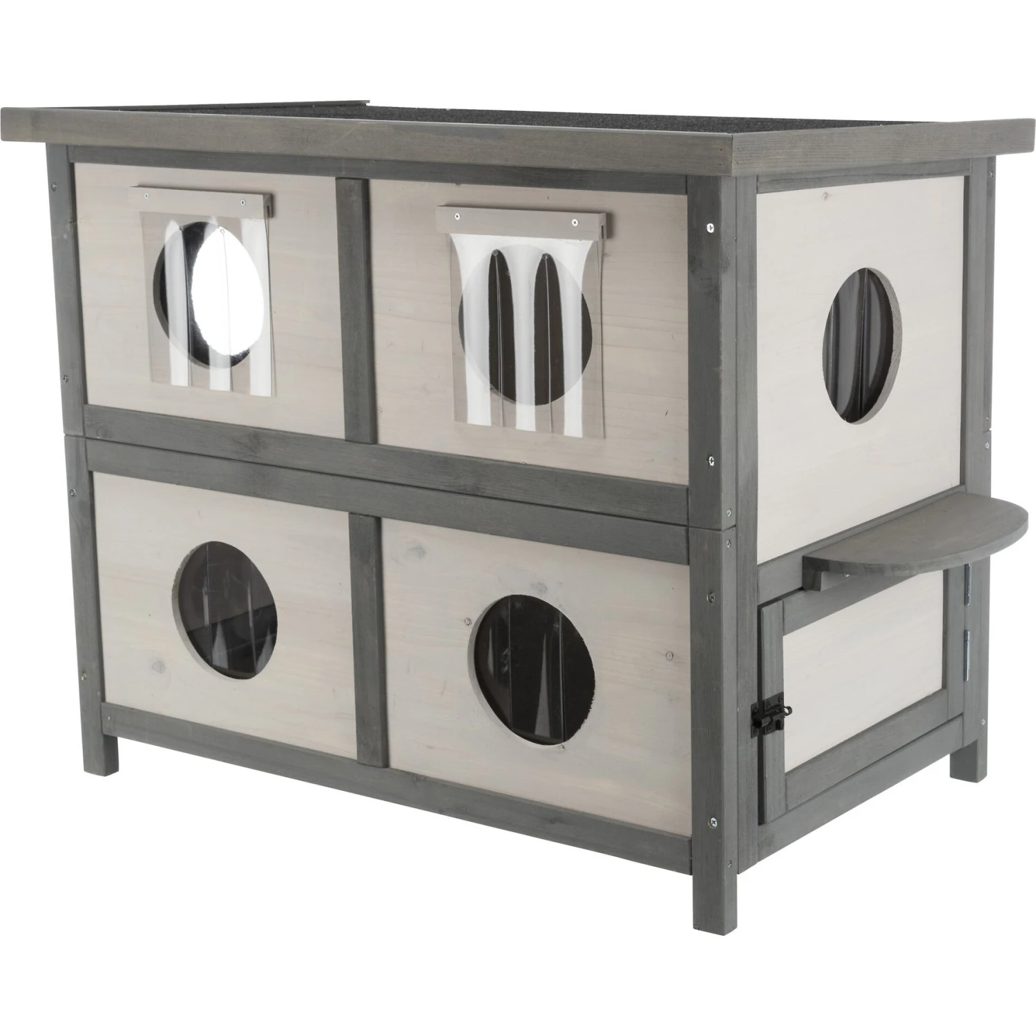 The Trixie Natura Wooden Cat House is the purr-fect escape for any kitty looking for shelter. This outdoor style house is crafted from a durable non-toxic fir wood so it stays strong through many years of use. Whether your home is frequented by feral cats or you have multiple feline friends who prefer to live outside, this spacious design offers four compartments and plenty of room for more than one cat. The house protects from the cold and wet elements and features a separate entry and exit system with escape doors in case a predator animal tries to get in.
