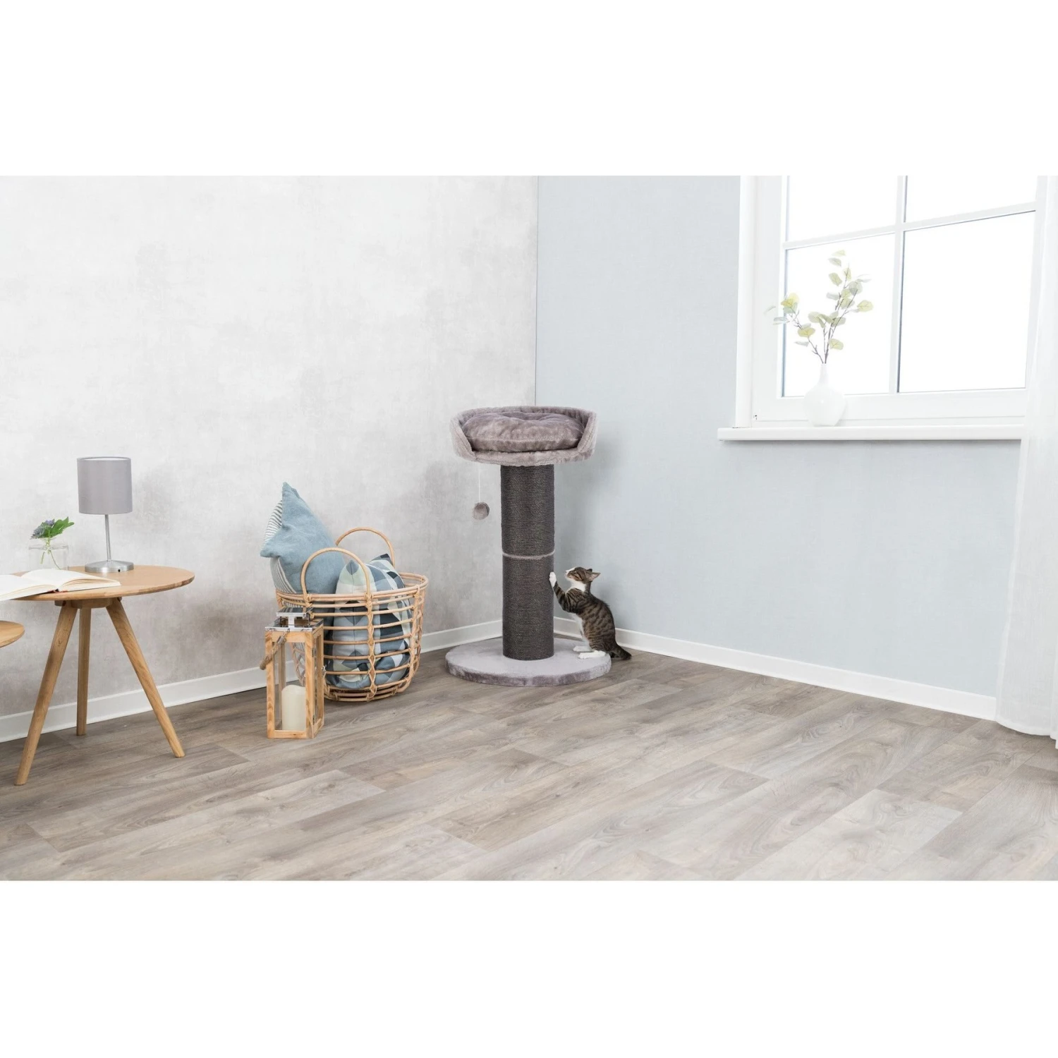 TRIXIE’s Pepino 35-in Plush Platform Cat Scratching Post will take your best bud’s scratching hobby up another level. This post is wrapped in an extra-thick natural sisal material to provide your pal with a safe place to scratch and show her claws, helping to prevent her from damaging your own furniture! The snuggly top bed is made from a super soft plush cushioning and is removable so your cat can use it elsewhere in the house. A dangly pom-pom toy will excite your girl so she partakes in stimulating play!