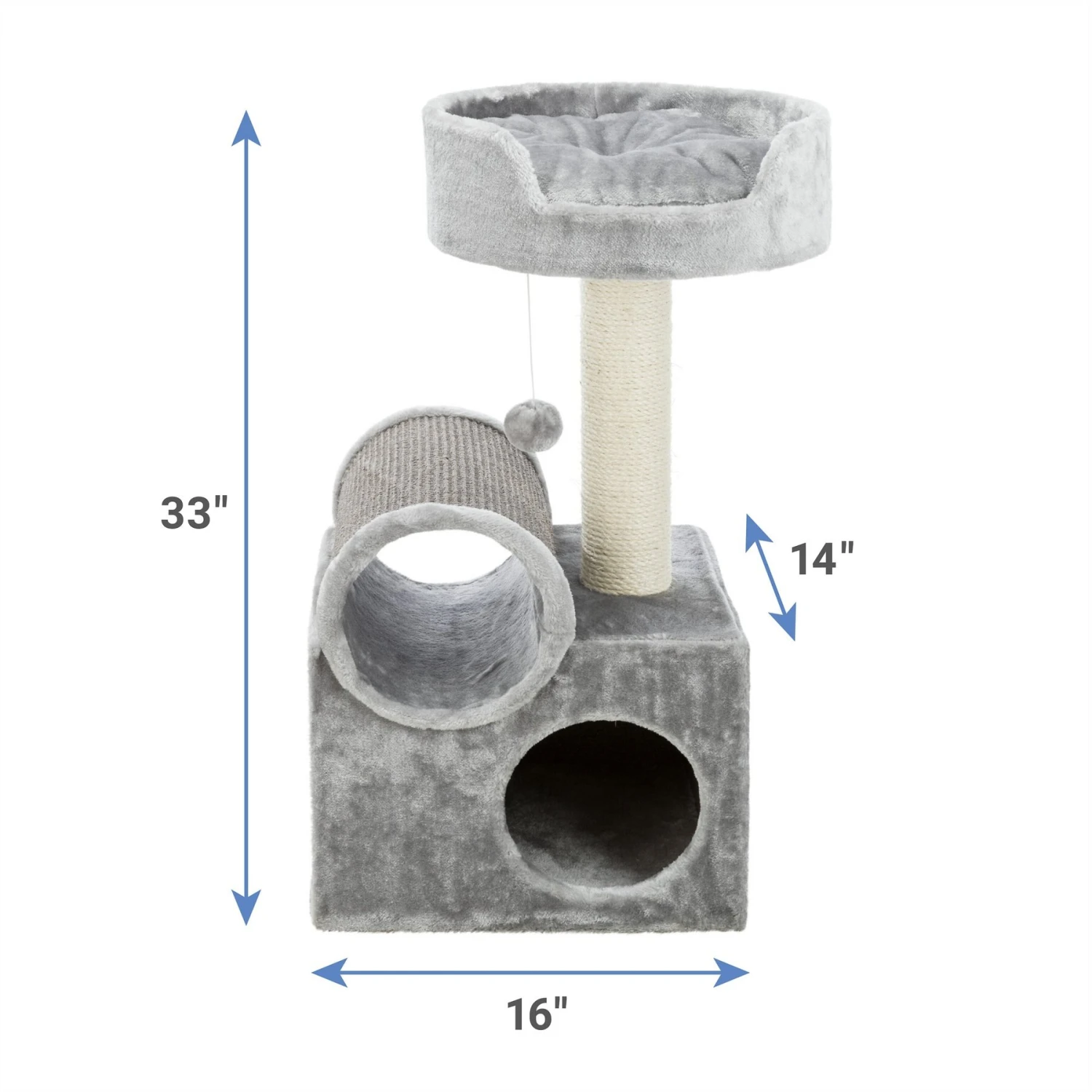 Featuring multiple places to play or hide out, any cat will love using TRIXIE’s Tolar Plush Cat Tree & Condo. This tree is almost three feet tall and is covered in a combination of ultra soft and scratchable materials. With a cushioned bed, soft tunnel, and private condo, the tower gives your furkid three comfy napping spots. To satisfy cats’ instinctual need to scratch, the tunnel and post are both wrapped in durable sisal. The structure also includes a dangling pom-pom, adding another entertainment option. Purr-fect for both playing and resting, this TRIXIE brand cat tree makes a fine addition to a feline-friendly home!