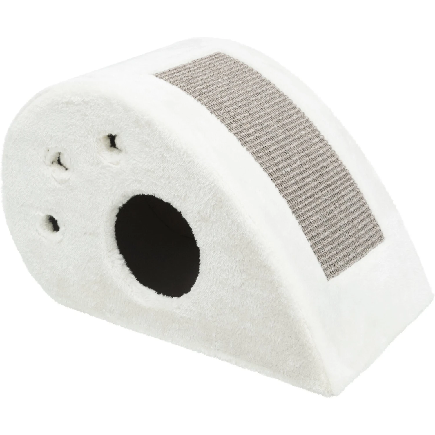 Trixie Topi Cat Condo & Scratcher is a stylish piece of cat furniture that combines the best of both worlds—a condo hideaway and a scratching surface. Your cat can sharpen her claws on the sisal scratching surface instead of on your furniture or carpet, giving her a healthy outlet for her scratching instincts. If a nap or place to hide is in order, your cat can crawl inside the kitty condo, covered with plush inside and out. And if she’s feeling spunky, there are even dangling plush toys inside the condo your cat will love to bat and bite at. This comfortable cat condo and scratcher combination is suitable for cats of all ages and activity levels.