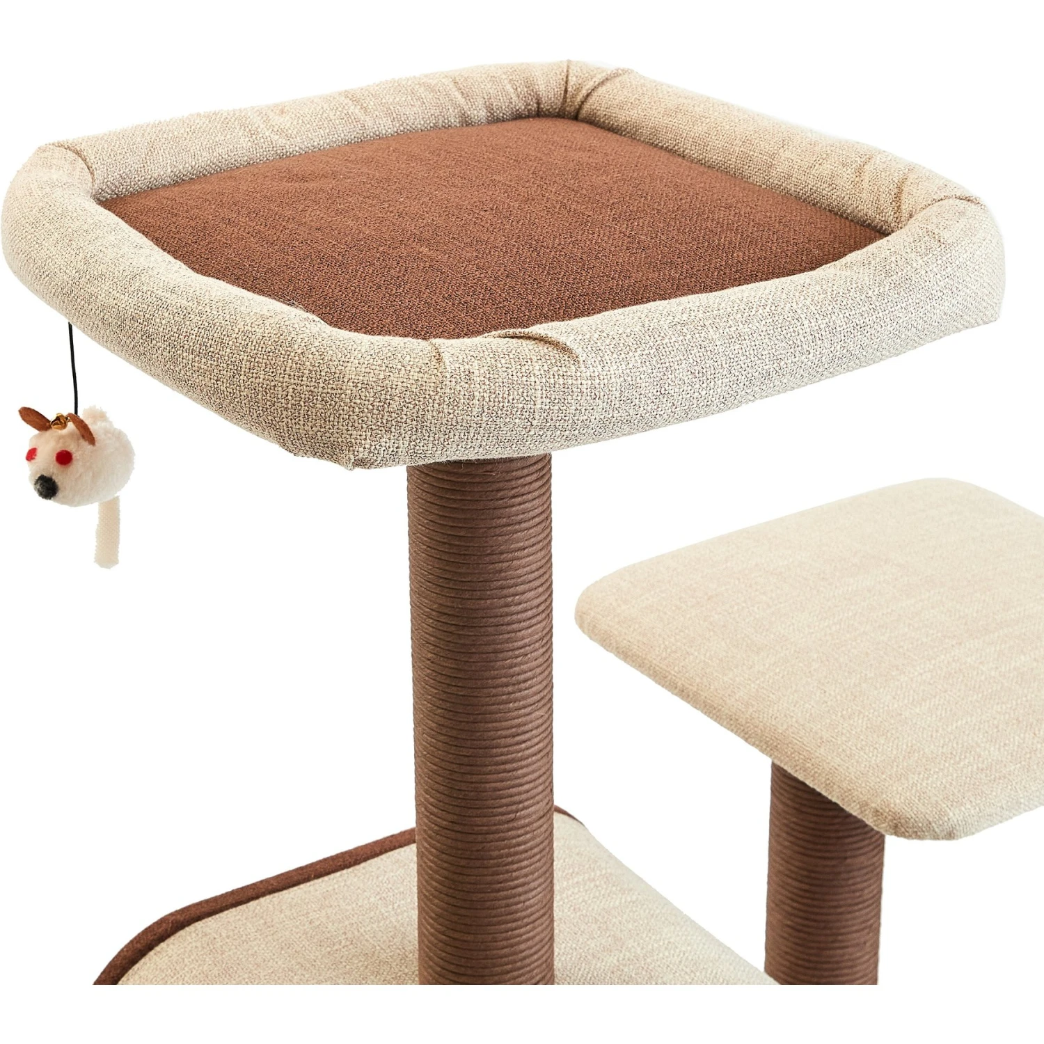Searching for a spot that’s purr-fect for perching, playing, scratching and napping? Look no further than the Two By Two The Redwood 53-in Cat Tree & Condo. Multiple platforms and an elevated design give your paw-tner plenty of options for cozy cat naps and to keep an eye on the local surroundings. Five enticing scratching posts let one or multiple cats indulge their natural scratching needs, while two attached toys encourage your feline to get frisky.