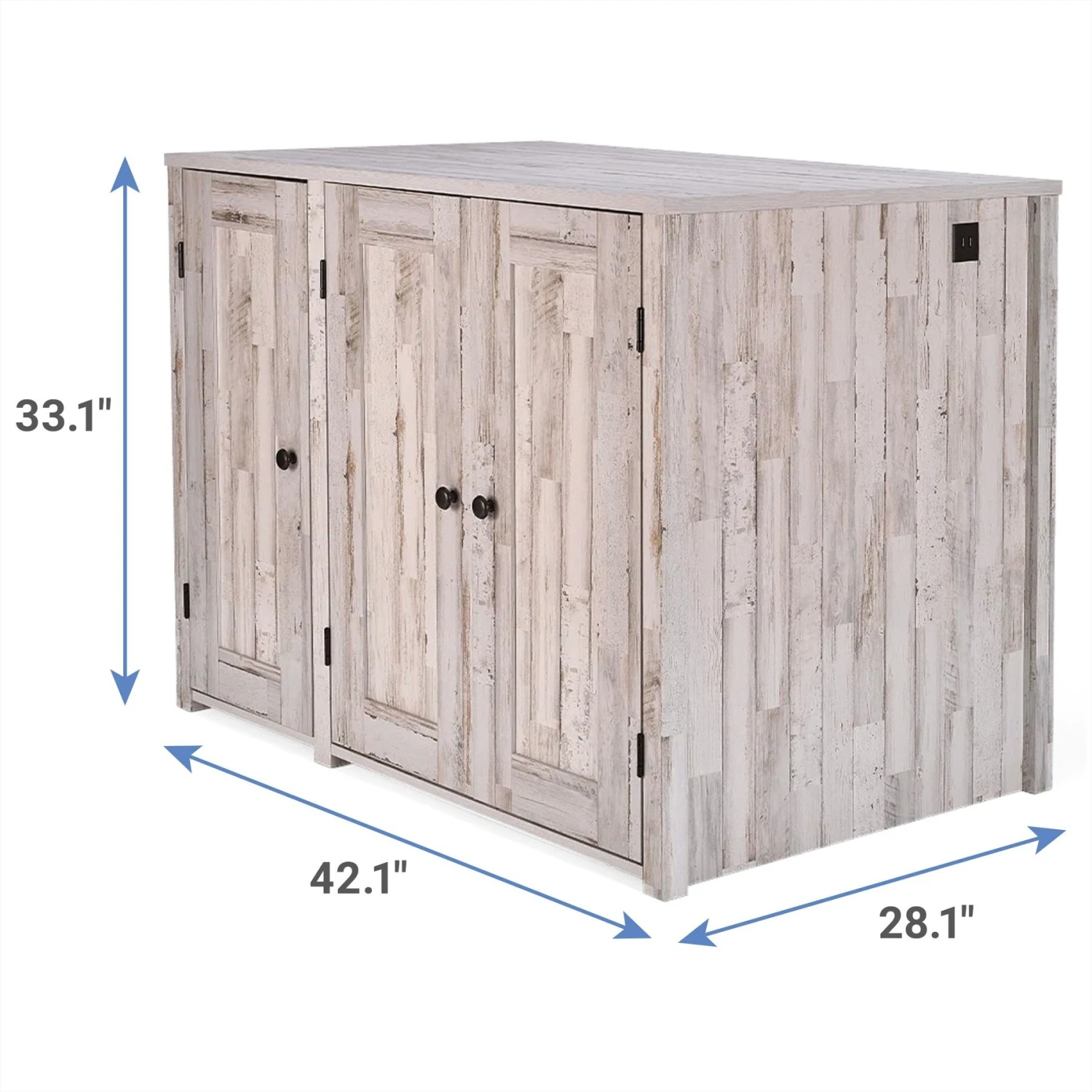 With the Whisker Litter-Robot Cat Litter Box Credenza Cat Cabinet you can hide your kitty’s litter box in plain sight, thanks to this attractive piece of cat furniture. This credenza features a modern farmhouse style that will complement many decor schemes. The composite wood is durable and can better withstand scratches than traditional wood, making this furniture a long-lasting addition to your home. Your cat’s litter box will be out of sight, and your furbaby will also get plenty of privacy when he does need to use the box. Compatible with either the Litter-Robot or standard litter box. Each sold separately.
