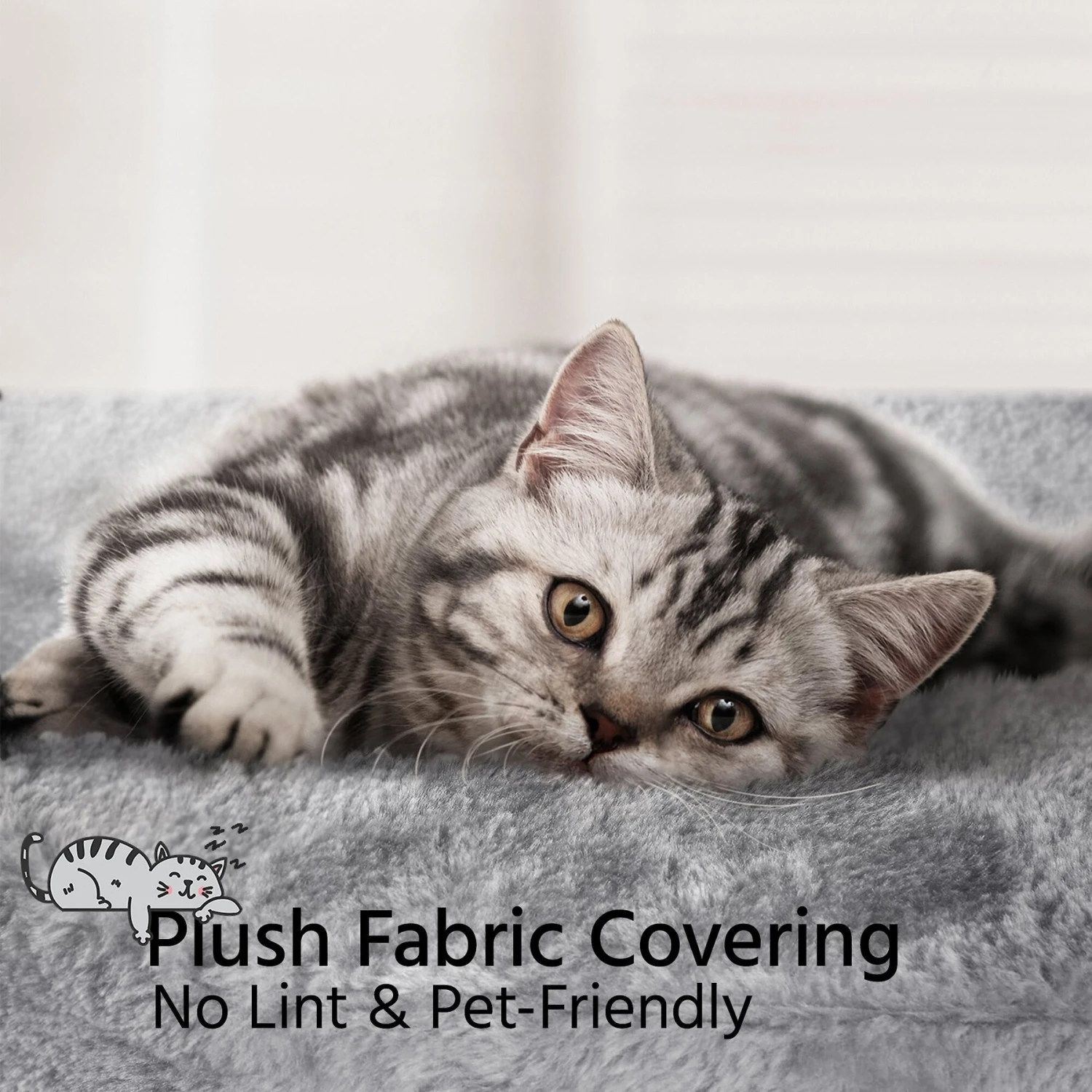 Give your fine feline friends a fantastic place to frolic with Yaheetech 3-Level Plush Cat Tree! Constructed of solid boards and connected with durable metal accessories, this sturdy cat tree is covered with soft plush that will keep tender paws comfortable. With five sisal rope bound poles, a roomy condo, three levels of spacious platforms, a hammock, and a basket cradle, this multifaceted cat paradise is bound to entertain even the most finicky of felines! The rounded edges prevent any kitties or cat servants from hurting themselves, and the middle platform has a secure anti-topple strap that ensures everything stays in place when your kitties rocket around during playtime. This structure is ideal for two average sized cats or two to three kittens.