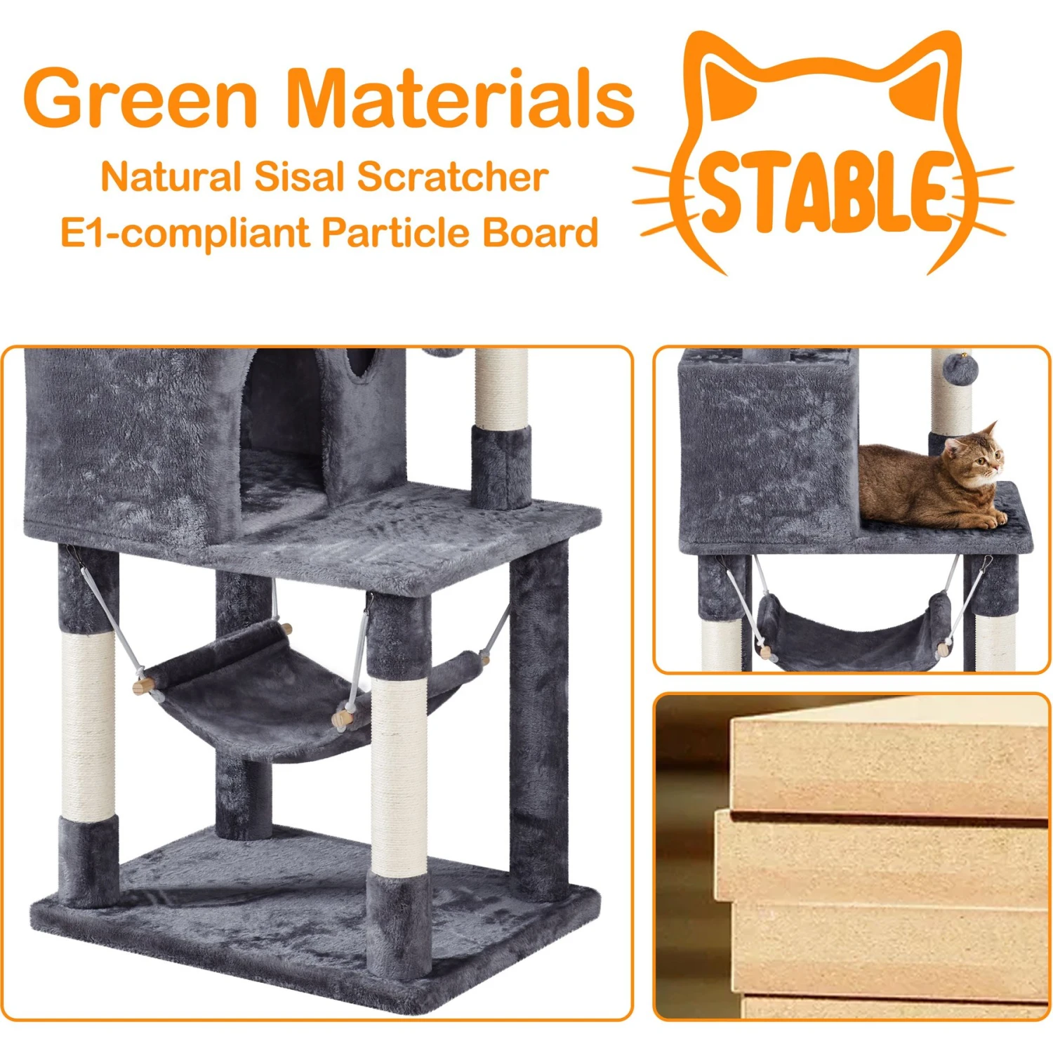 The Yaheetech 73-in Multi-Level Cat Tree has all the things kitties love, and then some. This cat tree features multiple tiers and fun structures to give your kitties plenty of places to play and lounge. It includes two platforms, a basket, two condos with windows, six scratching posts and two furry balls. The many scratching surfaces help keep kitty claws away from your furniture, while multiple platforms and sleep spaces make this tree perfect for multi-cat homes. The cat tree features a soft covering for kitty comfort, and an attached strap lets you secure it to a wall for stability and safety. Whether you have one cat or many furry friends, this cat tree is sure to be a hit!