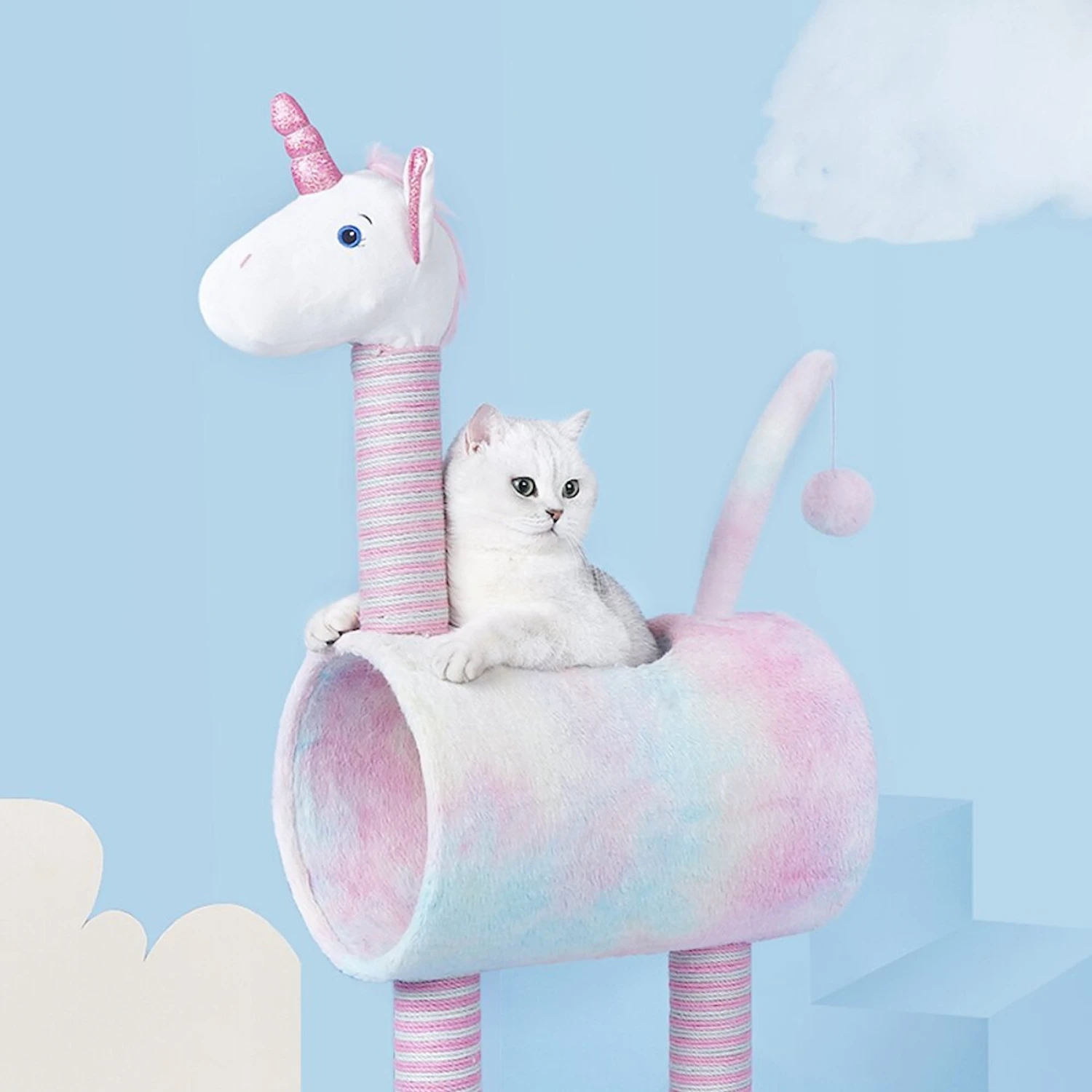 Give your mini mate a mythical new play pal with the ZEZE Funfetti Unicorn 41-in Sisal Cat Tree. This freestanding cat tree is designed to look like an adorable unicorn. It features a kitty condo that’s purr-fect for cat naps as well as a perch for your amigo to explore. This unicorn-shaped cat tree is crafted with three scratching posts to help encourage exercise and promote physical and mental health. It is constructed for long-lasting durability with a faux fur and sisal rope cover around a sturdy manufactured wood frame.